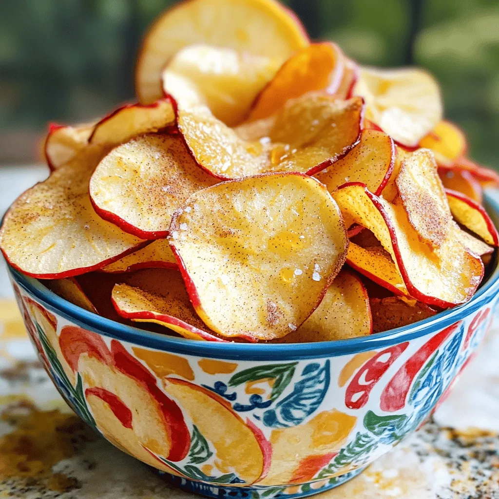 - 2 medium-sized apples (Fuji or Honeycrisp) - 1 teaspoon cinnamon - 1 tablespoon lemon juice - 1 tablespoon honey (optional) - Pinch of salt - Mandolin slicer or sharp knife - Air fryer - Mixing bowl - Wire rack for cooling To make air fryer apple chips, you need fresh apples. Fuji or Honeycrisp apples work best. They give a nice sweetness and crunch. You should add some cinnamon for flavor. Lemon juice helps keep the apples from turning brown. If you like more sweetness, drizzle honey on them. For tools, a mandolin slicer helps cut the apples into thin, even slices. If you don’t have one, a sharp knife works too. You will also need an air fryer to cook the chips. A mixing bowl is good for tossing the apple slices with the seasoning. A wire rack will help cool the chips after cooking. Gather these ingredients and tools before you start. This way, you can make your apple chips easily and quickly. To start, wash your apples well under cold water. This step is key. It removes any dirt and wax. Next, core the apples. You can use a knife or an apple corer. After coring, slice them into thin rounds, about 1/8 inch thick. A mandolin slicer is great for this. It helps to get even slices. Even slices cook better and crisp up nicely. Once sliced, toss the apple rounds in a bowl with lemon juice. This keeps them from browning. Browning can make them look less tasty. Next, sprinkle cinnamon and a pinch of salt over the slices. If you want sweeter chips, drizzle honey on them. Mix until each slice is coated well. This adds great flavor. Now, preheat your air fryer to 160°F (70°C). This temperature helps cook the chips evenly. After preheating, arrange the apple slices in a single layer in the basket. Do not overlap them. Overlapping can cause uneven cooking. Cook the slices for about 15-20 minutes. Flip them halfway through. This step helps them dry evenly. Keep an eye on them as they cook. You want them to be golden and crispy but not burnt. Once they are done, take them out and let them cool on a wire rack. They will crisp up more as they cool. To make the best air fryer apple chips, follow these tips: - Choose the right apples: I like Fuji or Honeycrisp for their sweetness and crunch. - Slice evenly: Thin slices about 1/8 inch thick cook better. A mandolin slicer helps a lot. - Use lemon juice: This keeps the apples from turning brown. It also adds a nice flavor. - Layer slices carefully: Place apple slices in a single layer in the air fryer. This ensures they cook evenly and get crispy. When making apple chips, avoid these common errors: - Overlapping slices: If slices touch, they will steam instead of crisping up. - Ignoring cooking times: Different air fryer models can cook at different speeds. Check your chips often to find the right time. Make your apple chips look great and taste even better: - Fun presentation: Serve the chips in a bright bowl or stack them in a cone. This makes them look inviting. - Dips and toppings: Consider drizzling honey on top or pairing the chips with yogurt dip. This adds flavor and makes them more exciting. {{image_2}} You can make your apple chips even more exciting. Try adding spices like nutmeg or pumpkin spice. Just a sprinkle can change the taste. You can also add sweet flavors. Brown sugar or maple syrup can give a nice touch. Mix these in with the apple slices before cooking. This will make your chips unique and tasty. The type of apple you use can change your chips’ flavor and texture. Fuji and Honeycrisp apples are great choices. They add sweetness and crunch. You can also try other apples like Granny Smith for a tart kick. If you want to experiment, use seasonal fruits like pears or peaches. They can also make delicious chips with a different taste. You can easily adapt this recipe for different diets. To make it vegan, just skip the honey. You can substitute it with agave syrup if you want some sweetness. For a sugar-free option, use stevia or leave out sweeteners altogether. If you need gluten-free options, you are in luck! This recipe is naturally gluten-free, so you can enjoy it without worry. To keep your apple chips crispy, use an airtight container. Glass jars or plastic containers with tight lids work well. Avoid paper bags, as they let in air. Store your apple chips in a cool, dry place away from sunlight. This helps them stay fresh for up to two weeks. If you want longer shelf life, consider freezing them. If your apple chips lose their crunch, don't worry! You can re-crisp them easily. Just pop them back into the air fryer at 160°F (70°C) for about 5 minutes. Keep an eye on them to prevent burning. For those who want to freeze apple chips, place them in a single layer on a baking sheet first. Once frozen, transfer them to an airtight bag or container. This keeps them from sticking together. Enjoy your crunchy snack whenever you want! Homemade air fryer apple chips can last about one week when stored properly. To keep them fresh, place them in an airtight container. Signs of spoilage include a soft texture or off smell. If you notice either, it’s best to toss them. For longer storage, you can freeze them. Just make sure to seal them well to avoid freezer burn. Yes, you can! Many fruits work well in an air fryer. Try pears, bananas, or even strawberries. Make sure you slice them thinly, just like with apples, for the best results. Toss them lightly with lemon juice to prevent browning. Keep an eye on cooking times, as different fruits may cook faster or slower than apples. Apple chips are a healthy snack! They are low in calories and high in fiber. A serving of apple chips has about 50 calories. They also provide vitamins A and C. Plus, they are a good source of antioxidants. Eating apple chips can help support your immune system and digestion. Just remember, if you add honey or sugar, it will increase the calories. Absolutely! If you prefer no cinnamon, simply skip it. You can still add a pinch of salt for flavor. Or, try other spice