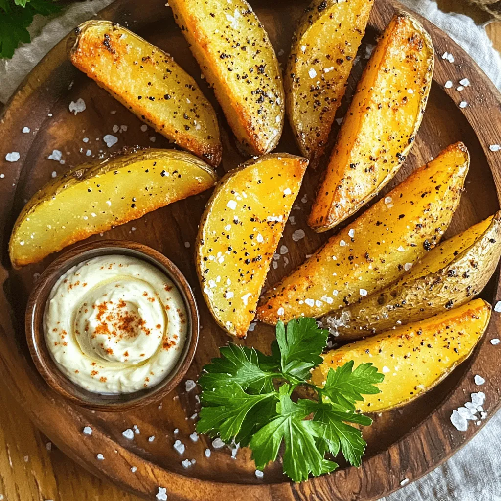 Next, you will need two tablespoons of olive oil. This helps the spices stick and adds flavor. For seasoning, grab one teaspoon of garlic powder and one teaspoon of paprika. These give a nice kick to your wedges. Don’t forget to add salt and pepper to taste. Finally, chop some fresh parsley for a bright garnish.