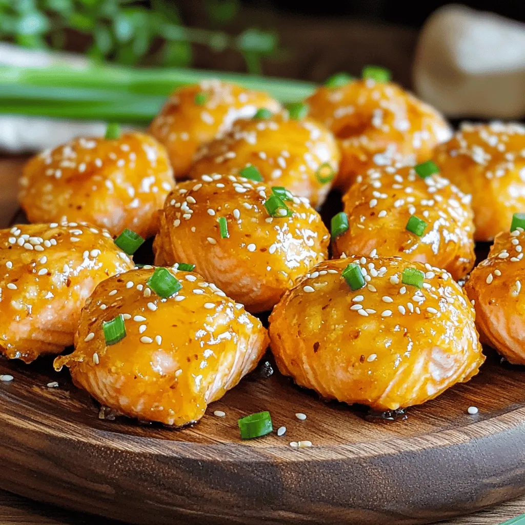 For garnishing, you’ll need chopped green onions and sesame seeds. These add a pop of color and crunch. They make your salmon bites look as good as they taste.