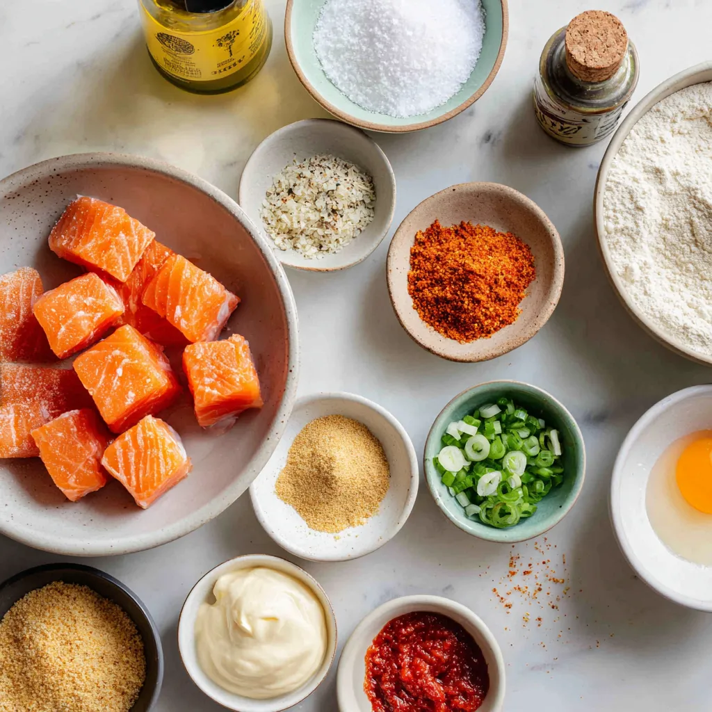 The salmon is the star of this dish. Use fresh salmon for the best flavor. Cut the salmon into cubes that are easy to eat. The flour mixture helps the coating stick well.