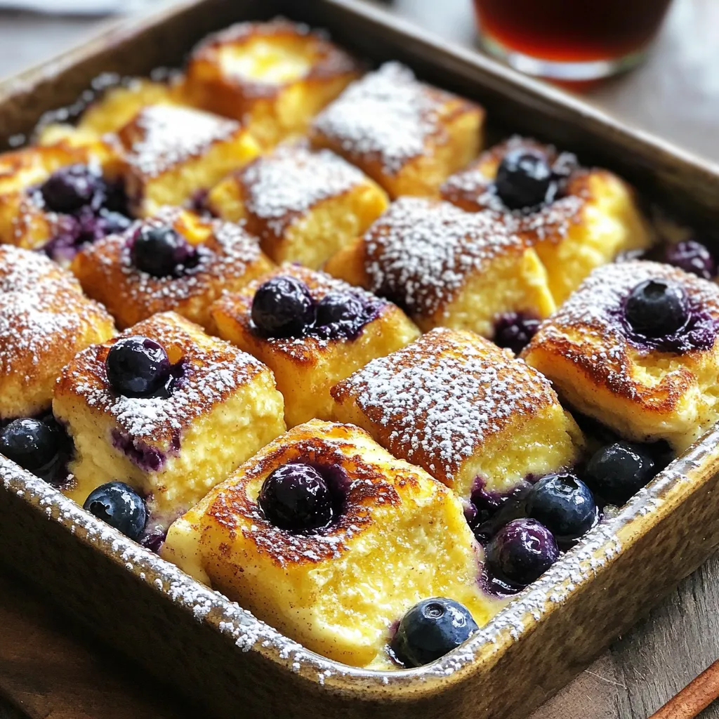 To store your Blueberry Cheesecake French Toast Casserole, let it cool first. Place it in an airtight container. This keeps it fresh for later. If you have a lot of leftovers, you can freeze it. Cut the casserole into smaller pieces. Wrap each piece tightly in plastic wrap. Then, place them in a freezer bag. This method helps prevent freezer burn.