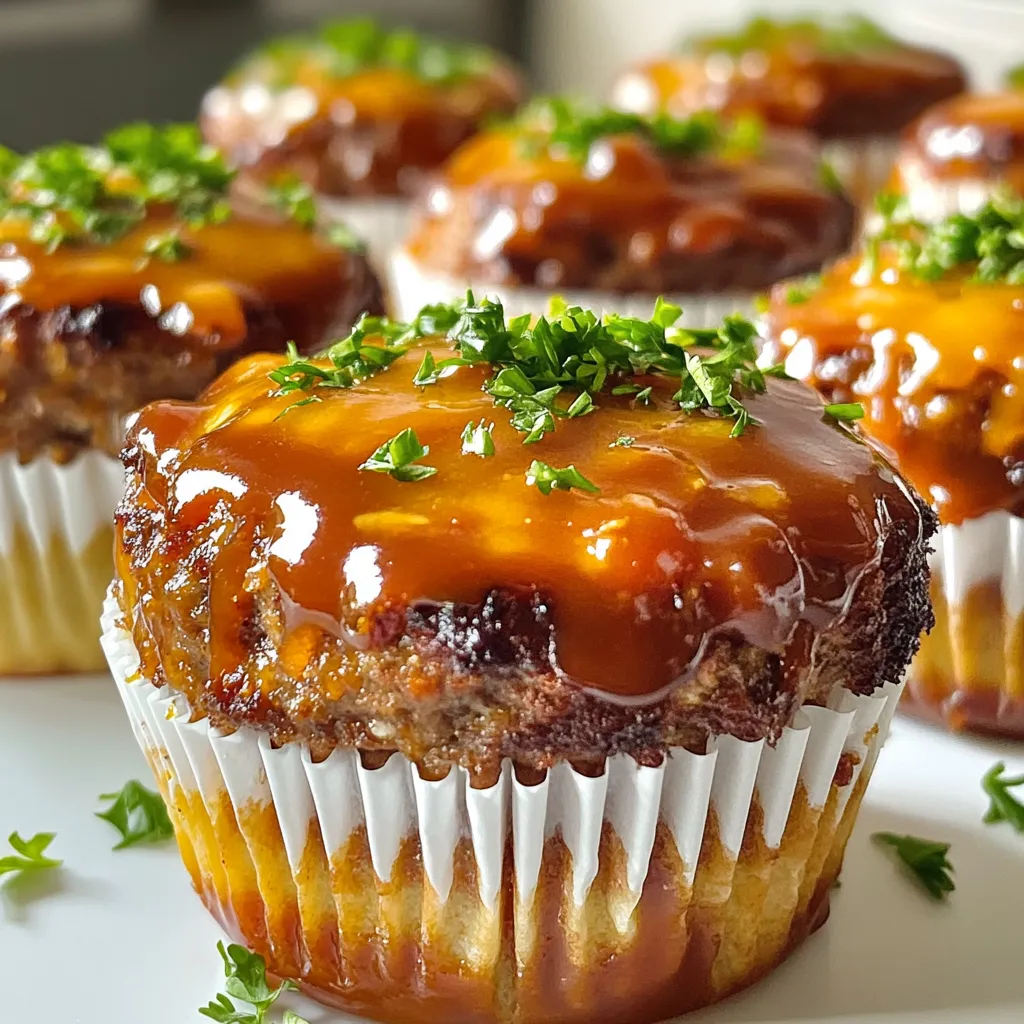 Delicious meatloaf cupcakes topped with BBQ sauce, perfect for a fun twist on a classic dish.