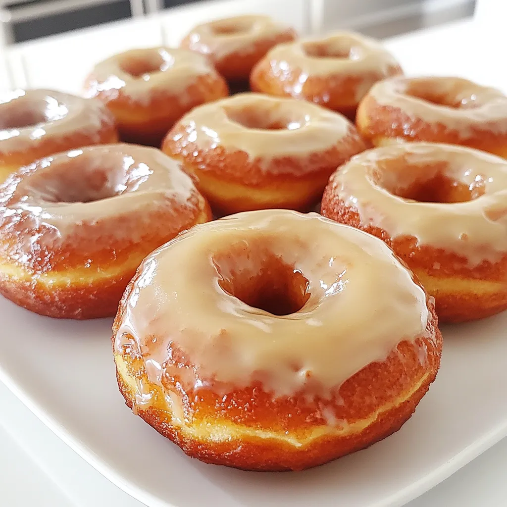 To make these tasty donuts, gather the following main ingredients: - 1 cup all-purpose flour - 1/2 cup granulated sugar - 1/4 cup brown sugar, packed - 1 teaspoon baking powder - 1/2 teaspoon baking soda - 1/4 teaspoon salt - 1/2 teaspoon ground cinnamon - 1/4 teaspoon nutmeg - 1/2 cup buttermilk, at room temperature - 1 large egg, at room temperature - 1/2 teaspoon vanilla extract - 1/2 cup unsalted butter (for browning) These ingredients give the donuts their light texture and rich flavor. The brown sugar adds depth, while the spices bring warmth and comfort. For the sweet maple glaze, you will need: - 1/2 cup maple syrup - 1 cup powdered sugar This glaze makes the donuts shine with a lovely sweetness. The maple syrup adds a unique flavor that pairs perfectly with the brown butter. If you need to swap out some ingredients, here are a few great options: - All-purpose flour can be replaced with whole wheat flour for a healthier version. - Buttermilk can be made by mixing milk with a bit of vinegar or lemon juice. - Granulated sugar can be substituted with coconut sugar if you prefer a less processed option. - For a dairy-free version, use almond milk or oat milk and a plant-based butter. These substitutions keep the taste delightful while catering to your dietary needs. Start by preheating your oven to 350°F (175°C). This step is key for perfect donuts. While the oven heats, grab your donut pan. Lightly grease it with non-stick spray. This helps prevent the donuts from sticking. Next, we’ll brown the butter. In a small saucepan, melt 1/2 cup of unsalted butter over medium heat. Gently swirl the pan as it melts. Watch it closely. In about 5-7 minutes, it will turn a deep golden brown. It will smell nutty and delicious. Remove it from heat and let it cool slightly. Now, it’s time to mix your dry ingredients. In a large bowl, whisk together: - 1 cup all-purpose flour - 1/2 cup granulated sugar - 1/4 cup brown sugar, packed - 1 teaspoon baking powder - 1/2 teaspoon baking soda - 1/4 teaspoon salt - 1/2 teaspoon ground cinnamon - 1/4 teaspoon nutmeg Make sure everything is well combined. In another bowl, mix your wet ingredients. Combine 1/2 cup buttermilk, 1 large egg, and 1/2 teaspoon vanilla extract. Slowly add the slightly cooled browned butter. Whisk until smooth. Pour the wet mixture into the dry ingredients. Gently fold them together until just combined. Be careful not to overmix. Transfer the batter into a piping bag or zip-top bag. Snip off the corner of the bag. Fill each cavity of the donut pan about 2/3 full. Bake for 10-12 minutes. They should be golden brown. A toothpick should come out clean from the center. Let them cool in the pan for about 5 minutes, then move to a wire rack. While the donuts cool, prepare the maple glaze. In a bowl, whisk together 1/2 cup maple syrup and 1 cup powdered sugar. Mix until smooth. If the glaze is too thick, add a teaspoon of water. Once the donuts are cool, dip the tops into the glaze. Let them set on a wire rack or plate. Enjoy your sweet treat! To make sure your butter is perfectly browned, watch it closely. Start by melting the butter in a pan over medium heat. Swirl the pan often. This helps the butter brown evenly. You want a deep golden color. It should smell nutty, which means it’s ready. This will take about 5-7 minutes. If it burns, you need to start over. When making the batter, don’t overmix. Mix just until the wet and dry ingredients are combined. Overmixing makes donuts tough. Also, use room temperature ingredients. This helps the batter blend smoothly. If your egg or buttermilk is cold, it can shock the batter and change the texture. For the glaze, start with maple syrup and powdered sugar. Mix them until smooth. If the glaze is too thick, add a little water, one teaspoon at a time. Keep mixing until you get the right consistency. It should coat the back of a spoon but not drip off too fast. This will give your donuts a nice, even glaze. {{image_2}} You can easily change the taste of your donuts. Try using different extracts. For example, almond or maple extract adds a unique twist. Just replace half of the vanilla extract with your chosen flavor. You can also use spices like cardamom or ginger for warmth. Experimenting with flavors helps you find your favorite. Adding texture to your donuts makes them even better. Chop up nuts like walnuts or pecans and fold them into the batter. If you love chocolate, mix in chocolate chips. Dark or milk chocolate works great here. Just be careful not to overmix, as this can make your donuts dense. These add-ins make every bite exciting and tasty. You can switch up the way you glaze your donuts. Instead of the classic maple glaze, try a chocolate glaze. Just melt chocolate and dip the donuts in it. You can also sprinkle toppings like crushed nuts or sprinkles on the glaze. For a lighter option, dust them with powdered sugar. These techniques allow you to create a variety of delicious donuts to enjoy! To keep your Brown Butter Maple Donuts fresh, store them in an airtight container. Layer parchment paper between the donuts to prevent them from sticking together. Place the container in a cool, dry spot, like your kitchen counter. This method helps maintain the donuts' soft texture and delicious flavor for up to three days. If you want to save some donuts for later, freezing is a great option. Allow the donuts to cool completely before freezing. Wrap each donut in plastic wrap, then place them in a freezer bag. Squeeze out the air before sealing. Properly stored, these donuts can last in the freezer for up to three months. When you're ready to enjoy them, simply thaw at room temperature. To bring back the warm, fresh taste of your donuts, reheat them in the oven. Preheat your oven to 350°F (175°C). Place the donuts on a baking sheet and warm them for about 5-10 minutes. This method keeps the outside crisp while warming the inside. Avoid using the microwave, as it can make the donuts che