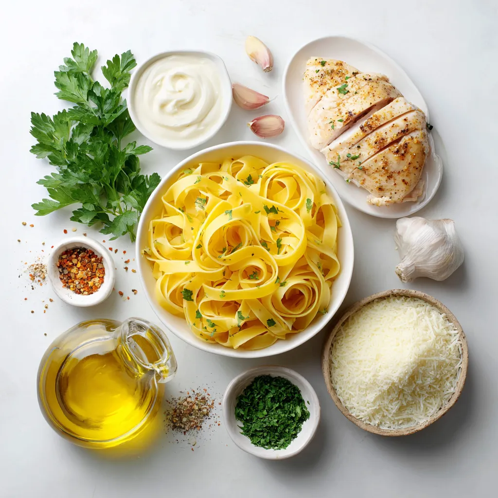 These ingredients come together to create a rich and tasty dish. The chicken gives protein, while the fettuccine adds a nice chewy texture. Garlic and cheese will add deep flavors.