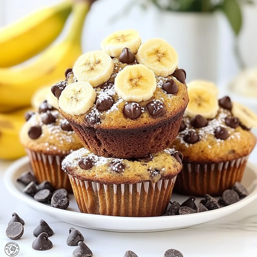 Delicious muffins made with ripe bananas and chocolate chips, perfect for breakfast or a snack.