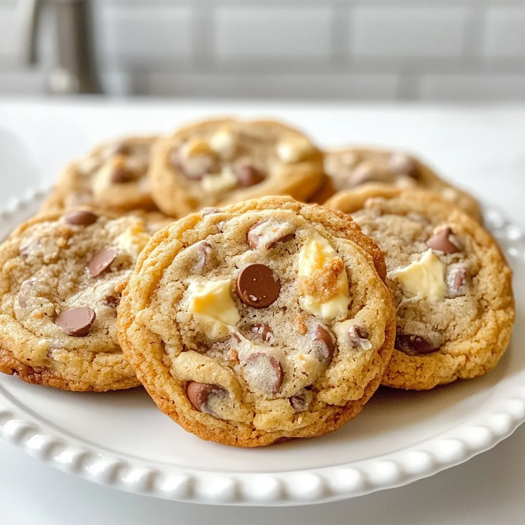 To make Chocolate Chip Cheesecake Cookies, you will need the following ingredients: - 1 cup cream cheese, softened - 1/2 cup unsalted butter, softened - 3/4 cup brown sugar, packed - 1/4 cup granulated sugar - 1 large egg - 1 teaspoon vanilla extract - 1 1/2 cups all-purpose flour - 1/2 teaspoon baking soda - 1/4 teaspoon salt - 1 cup semi-sweet chocolate chips - 1/2 cup crushed graham crackers Each ingredient plays a key role in creating the perfect cookie. The cream cheese gives it that rich, cheesecake flavor. Butter adds moisture and helps the cookies spread. Brown sugar makes them chewy and sweet. The egg binds everything and adds fluffiness. The flour forms the base of the dough, while baking soda helps them rise. Salt enhances the flavors. Chocolate chips add sweetness and richness, and graham crackers bring that classic cheesecake taste. Gather these items before you start. This will make your baking process smooth and enjoyable. Happy baking! {{ingredient_image_1}} 1. Preheat your oven to 350°F (175°C). Prepare a baking sheet by lining it with parchment paper. This helps the cookies not stick. 2. In a large mixing bowl, combine 1 cup of softened cream cheese and 1/2 cup of softened unsalted butter. Use an electric mixer to blend these until they are smooth and fluffy. This step is key for a creamy texture. 3. Next, add 3/4 cup of packed brown sugar and 1/4 cup of granulated sugar to the cream mixture. Beat until everything is well mixed. The sugars add sweetness and help the cookies rise. 4. Incorporate 1 large egg and 1 teaspoon of vanilla extract. Mix well until the batter is smooth. The egg binds the ingredients, while the vanilla adds flavor. 5. In a separate bowl, whisk together 1 1/2 cups of all-purpose flour, 1/2 teaspoon of baking soda, and 1/4 teaspoon of salt. Gradually add this dry mix to the wet ingredients, stirring just until combined. Avoid over-mixing to keep the cookies soft. 6. Now, fold in 1 cup of semi-sweet chocolate chips and 1/2 cup of crushed graham crackers. Mix gently to ensure they are evenly distributed. The graham crackers give that delicious cheesecake flavor. 7. Using a cookie scoop or tablespoon, drop rounded balls of dough onto the prepared baking sheet. Make sure to space them about 2 inches apart for even baking. 8. Bake in the preheated oven for 10 to 12 minutes. Look for lightly golden edges with soft centers. This ensures a chewy texture. 9. After baking, remove the cookies from the oven. Let them cool on the baking sheet for about 5 minutes. Then, transfer them to a wire rack to cool completely. Enjoy the sweet aroma as they cool! - How to achieve the perfect cookie texture To get soft and chewy cookies, do not overmix your dough. Mix just until you see no dry flour. Bake until the edges are light brown, but the center looks soft. This helps keep the inside moist and chewy. - Recommended tools for baking cookies Use a good electric mixer to cream butter and cream cheese. A cookie scoop helps you make even-sized cookies. Parchment paper on your baking sheet makes cleanup easy and helps cookies bake evenly. - Cooling and serving tips Allow the cookies to cool on the sheet for about 5 minutes. Then, move them to a wire rack. This keeps them from getting soggy. Serve warm for a melty chocolate experience, or let them cool for a firmer texture. - Adding spices or extracts For a twist, try adding a pinch of cinnamon or nutmeg. A bit of almond extract can also enhance the cheesecake flavor. Just a small amount can make a big difference in taste. - Alternative chocolate types If you want to mix it up, use milk chocolate or dark chocolate chips. You can also try white chocolate for a sweeter cookie. Each type gives a unique flavor to these delicious cheesecake cookies. Pro Tips Chill the Dough: For even thicker cookies, chill the dough for 30 minutes before baking. This helps prevent spreading and gives you a chewier texture. Use Room Temperature Ingredients: Ensure your cream cheese and butter are at room temperature for easier mixing and a smoother batter. Customize Your Mix-Ins: Feel free to swap out semi-sweet chocolate chips for dark chocolate or even white chocolate for a different twist on flavor! Store Properly: Keep leftover cookies in an airtight container at room temperature for up to a week to maintain freshness. {{image_2}} If you want to make these cookies fit your diet, consider using gluten-free options. You can swap regular flour for a gluten-free blend. Just make sure the blend has xanthan gum for the right texture. For a vegan twist, replace cream cheese with a vegan cream cheese. Use coconut oil instead of butter. You can also use flax eggs or applesauce in place of the egg. Both work well to keep the cookie moist. Feeling adventurous? Try different chip flavors. Dark chocolate or white chocolate chips add a unique taste. You can even mix in peanut butter chips for extra flavor. Adjusting sweetness can change the cookie's vibe. If you prefer a less sweet cookie, cut back on the brown sugar. You can also add a touch of sea salt to balance the sweetness. This adds a nice contrast to the chocolate and cream cheese. To keep your chocolate chip cheesecake cookies fresh, store them at room temperature. Use an airtight container to prevent drying out. Place parchment paper between layers to avoid sticking. If you want to keep them longer, refrigerate them. They will stay fresh for about one week in the fridge. Just remember to seal them well to keep them moist. To freeze cookies properly, first let them cool completely. Then, place them in a single layer on a baking sheet. Freeze until firm, about one hour. After that, transfer them to a freezer bag. Remove as much air as possible to avoid freezer burn. They can last up to three months in the freezer. When you want to enjoy a cookie, take it out and let it thaw at room temperature. You can also reheat it in the oven for a few minutes. This will bring back that fresh-baked taste. How d