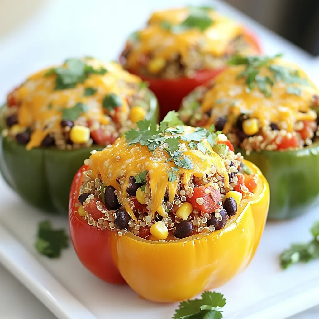 A delicious and nutritious dish featuring bell peppers stuffed with a savory quinoa and black bean mixture.