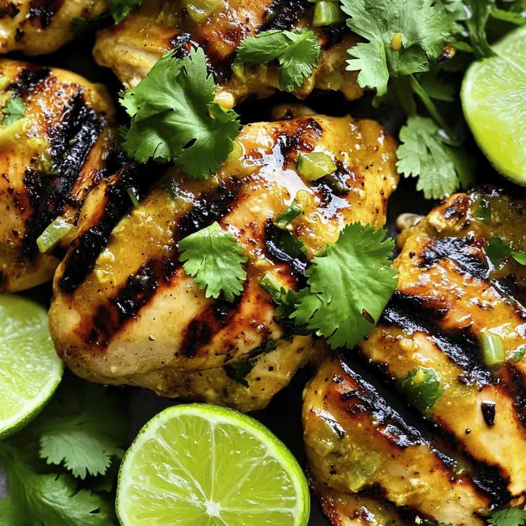 Now it’s time to cook! Preheat your grill or grill pan to medium-high heat. Remove the chicken from the marinade, letting any extra drip off. Discard the marinade. Grill the chicken breasts for about 6-7 minutes on each side. You want them to reach 165°F (75°C). The chicken should have nice grill marks and smell fantastic. Once cooked, let the chicken rest for 5 minutes. This helps keep it juicy. Slice and serve with fresh lime juice and cilantro for a burst of flavor!