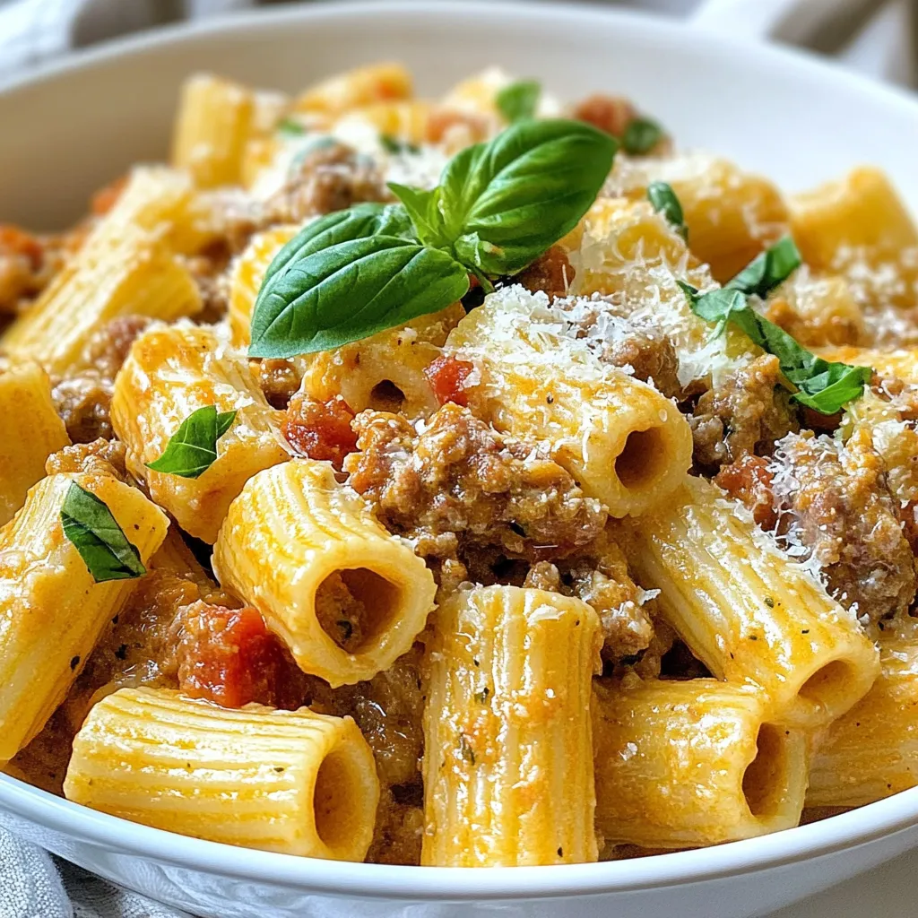 A delicious and creamy pasta dish featuring Italian sausage, rigatoni, and a rich sauce.