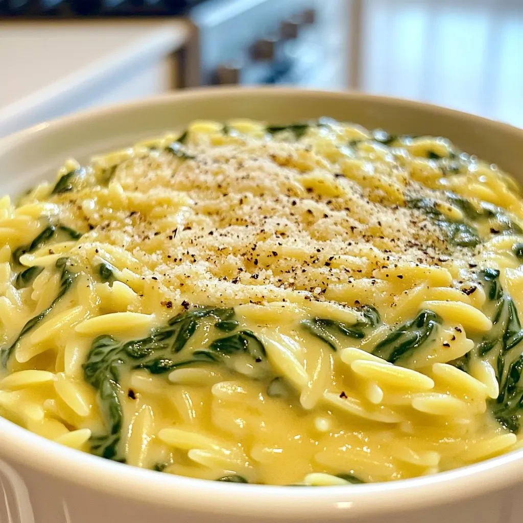 To create Creamy Spinach Parmesan Orzo, you need a few simple ingredients. Here’s the list: