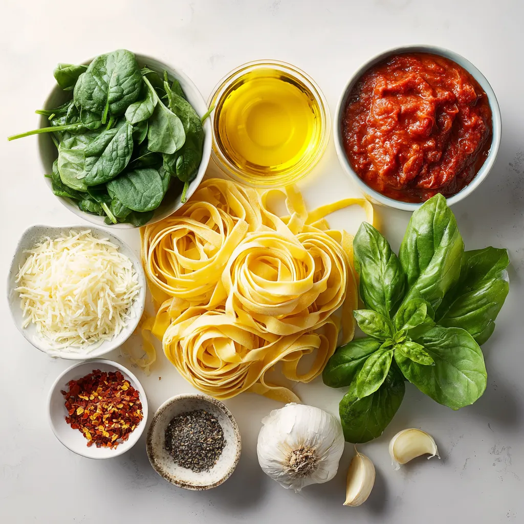 These ingredients come together to create a rich and tasty dish. Fettuccine adds a nice texture. Olive oil gives flavor and helps cook the garlic. Garlic is the star here, adding a strong and savory taste. Crushed tomatoes provide a sweet base for the sauce.