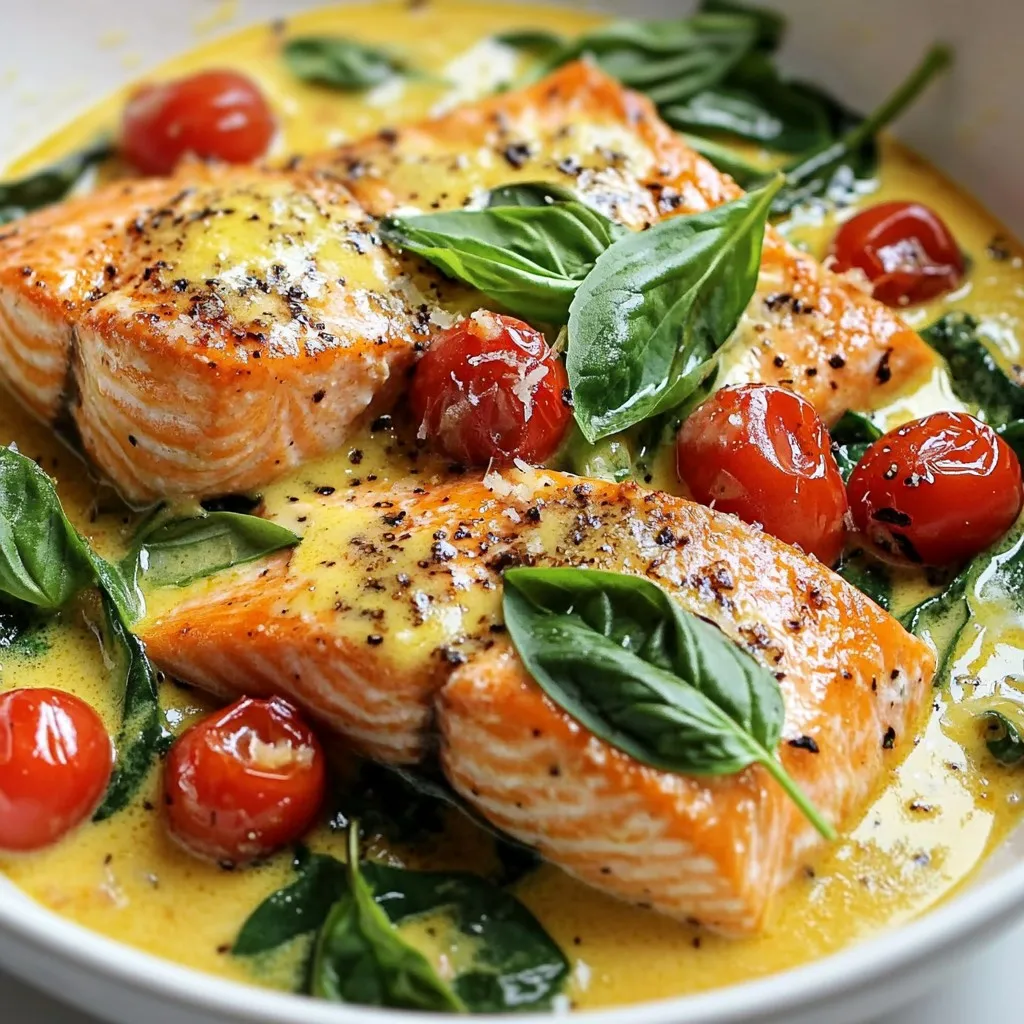 To make this creamy Tuscan salmon skillet, gather these items: - 4 salmon fillets (about 6 oz each) - 2 tablespoons olive oil - 3 cloves garlic, minced - 1 cup cherry tomatoes, halved - 1 cup baby spinach - 1 cup heavy cream (or coconut milk for a lighter version) - 1/2 cup grated Parmesan cheese - 1 teaspoon dried Italian herbs (oregano, basil, thyme) - Salt and pepper to taste - Fresh basil leaves for garnish For a lighter twist, you can swap heavy cream for coconut milk. This change lowers the fat while keeping the dish creamy. You can also use skinless salmon fillets to cut down on calories. If you want more veggies, try adding zucchini or bell peppers for extra flavor and nutrition. To make your dish pop, top it with fresh basil leaves. They add a nice color and fresh taste. You could also sprinkle more Parmesan cheese for a richer flavor. Pairing with garlic bread or serving over pasta makes a great meal too. Enjoy your beautiful meal! {{ingredient_image_1}} Start by heating two tablespoons of olive oil in a large skillet over medium-high heat. While the oil warms, season the four salmon fillets with salt and pepper. Once the oil shimmers, add the fillets skin-side down. Sear them for about four to five minutes until they turn golden brown. Flip the fillets and cook for another four to five minutes until fully cooked. Remove the salmon from the skillet and set it aside on a plate. In the same skillet, add three minced garlic cloves. Sauté the garlic for about 30 seconds until it smells great. Next, toss in one cup of halved cherry tomatoes. Cook the tomatoes for three to four minutes until they start to soften. Pour in one cup of heavy cream, stirring well. Bring the mix to a gentle simmer. Add in half a cup of grated Parmesan cheese and one teaspoon of dried Italian herbs. Stir until the cheese melts and the sauce becomes creamy. Now it's time to bring everything together. Add one cup of baby spinach to the skillet. Stir it in until it wilts, which takes about two minutes. Return the seared salmon fillets to the skillet, placing them on top of the sauce. Spoon some of the creamy sauce over each fillet. Cook for an additional two to three minutes to heat everything through. Taste and adjust seasoning with salt and pepper as needed. Enjoy your delicious creamy Tuscan salmon! To make the best salmon, choose fresh fillets. Look for bright colors and firm texture. Season your salmon with salt and pepper before cooking. This simple step adds flavor. Heat olive oil in the skillet. Place the salmon skin-side down. Sear each side for 4-5 minutes. This gives a nice golden crust. Remove the salmon and set it aside. This keeps it tender and juicy. Herbs can transform your dish. For this recipe, use dried Italian herbs. Oregano, basil, and thyme work well together. Add them when you pour in the cream. This lets the flavors mix nicely. Fresh basil leaves are great for garnish too. They add a pop of color and taste. Don’t be shy with herbs; they boost flavor without extra calories. Serve your creamy Tuscan salmon in shallow bowls. This makes for a lovely presentation. Add fresh basil on top for a nice touch. For a complete meal, pair it with garlic bread. You can also serve it over pasta or quinoa. Both options soak up the creamy sauce well. Enjoy this dish with family or friends for a cozy dinner! Pro Tips Perfectly Cooked Salmon: To ensure your salmon is cooked perfectly, aim for an internal temperature of 145°F (63°C). The fish should flake easily with a fork. Enhance the Flavor: Add a splash of white wine or lemon juice to the sauce for an extra layer of flavor. It brightens the dish and complements the creaminess. Use Fresh Ingredients: Whenever possible, opt for fresh spinach and tomatoes. They will provide a vibrant color and superior taste compared to their canned or frozen counterparts. Make it Your Own: Feel free to customize the recipe by adding other vegetables such as bell peppers or zucchini, or even spices like red pepper flakes for a kick! {{image_2}} You can swap salmon for other fish like tilapia or cod. Both cook quickly and stay moist. If you prefer meat, try chicken breasts. Just adjust cooking time to ensure they are fully cooked. For a heartier option, use shrimp. They need only a few minutes to cook in the sauce. To make this dish vegetarian, replace the salmon with hearty vegetables. Zucchini, eggplant, or even tofu work well. Cook the veggies until tender. They will soak up the creamy sauce just like the fish. This makes a rich, tasty meal without meat. For extra flavor, add sun-dried tomatoes. They bring a sweet, tangy kick to the dish. Just chop them up and stir them in with the tomatoes. Capers are another great choice. They add a briny taste that pairs well with the cream. Both options give a unique twist to the classic recipe. To keep your creamy Tuscan salmon fresh, store it in an airtight container. Let the dish cool down before sealing it. Place it in the fridge for up to three days. If you want to enjoy it later, keep the sauce and salmon together. This helps maintain flavor and moisture. When reheating, use a skillet over low heat. This helps the salmon warm evenly without drying out. You can add a splash of cream or water to keep it creamy. Heat for about 5 minutes, stirring gently, until warmed through. Avoid high heat to prevent overcooking. If you want to freeze the dish, it's best to freeze just the salmon and sauce together. Let it cool completely, then place it in a freezer-safe container. It can last up to three months in the freezer. To enjoy it later, thaw overnight in the fridge before reheating. Yes, you can use frozen salmon. Just thaw it first. Place it in the fridge overnight or use cold water. After thawing, pat it dry. This helps to get a nice sear. Cooking times may vary slightly, so check for doneness. You can use coconut milk for a lighter version. It adds a hint of sweetness. For a low-calorie option, try using Greek yogurt. It thicke