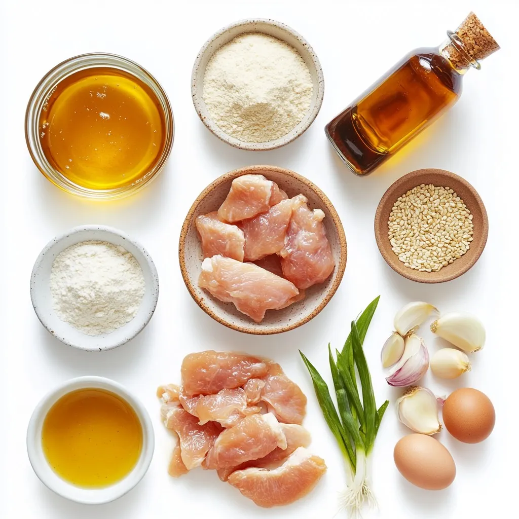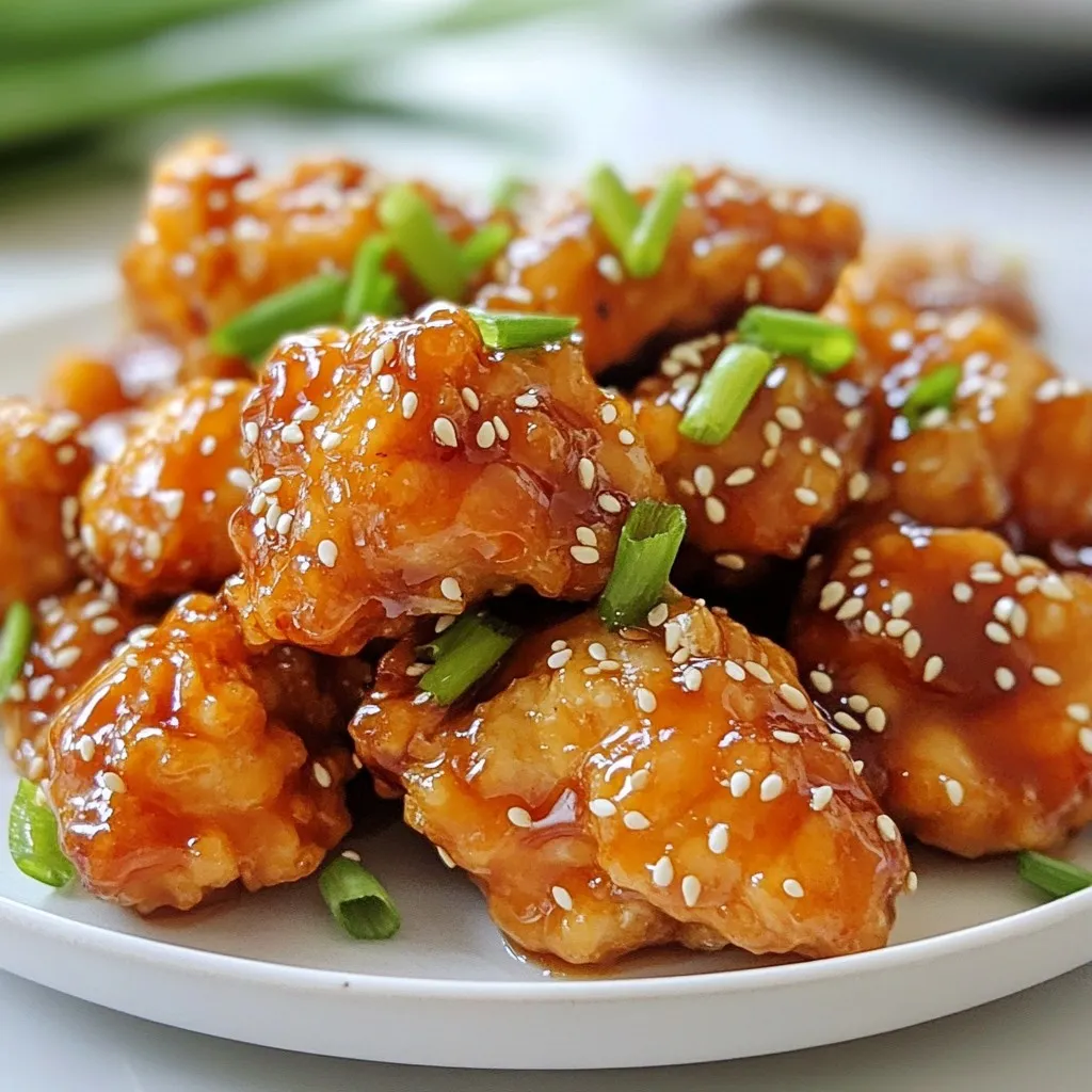 - Chicken - 1 lb boneless, skinless chicken thighs, cut into bite-sized pieces - Coating ingredients - 1 cup cornstarch - 2 large eggs, beaten - 1/2 cup all-purpose flour - 1 teaspoon baking powder - Salt and pepper to taste - Oil for frying (vegetable or canola) - Sauce ingredients - 1/2 cup honey - 2 tablespoons soy sauce (low sodium recommended) - 1 tablespoon sesame oil - 2 cloves garlic, minced - 1 teaspoon ginger, grated - 2 tablespoons sesame seeds - 3 green onions, sliced (for garnish) The chicken is the star here. I use thighs because they stay juicy. The coating gives it that crunchy texture. Cornstarch, eggs, and flour work great together. The sauce blends sweet and savory. Honey adds sweetness, while soy sauce brings depth. Sesame oil and garlic give it a kick. Don't forget the green onions for a fresh touch. Each part of the dish plays a key role in flavor and texture. {{ingredient_image_1}} First, we need to bread the chicken. Start by mixing cornstarch with salt and pepper in one bowl. In another bowl, beat the eggs. In a third bowl, mix flour, baking powder, salt, and pepper. Next, take each piece of chicken. Dip it in the cornstarch first. Then, coat it in the egg. Finally, roll it in the flour mix. Make sure every piece is well-covered. This helps create a crispy crust. Now, let’s fry the chicken. Heat oil in a deep pan over medium-high heat. Once the oil is hot, add the chicken in batches. Don’t overcrowd the pan. Fry until golden brown, about 4-5 minutes. Remove the chicken and place it on paper towels to drain. Now, let’s make the sauce. In a saucepan, mix together honey, soy sauce, sesame oil, minced garlic, and grated ginger. Heat this mixture over medium heat. Bring it to a gentle boil. Stir often to prevent sticking. Let it simmer for 2-3 minutes. This thickens the sauce and blends the flavors. After the sauce thickens, it’s time to coat the chicken. Add the fried chicken pieces to the saucepan. Gently fold the chicken into the sauce. Make sure every piece is coated well. For presentation, transfer the chicken to a serving dish. Sprinkle sesame seeds on top. Finish by garnishing with sliced green onions. This adds color and freshness to your dish. To get the best crispiness, you need the right cooking temperature. Heat your oil to 350°F (175°C). Use a thermometer to check this. If the oil is too cool, the chicken will soak up oil and become soggy. If it's too hot, the outside will burn before the inside cooks. Frying technique matters too. Fry the chicken in small batches. This keeps the oil temperature steady. Do not overcrowd the pan. Each piece needs space to fry evenly. Fry for about 4-5 minutes until golden brown. Drain on paper towels to remove excess oil. To make your dish pop, try adding spices. A pinch of red pepper flakes adds heat. You can also mix in garlic powder for more flavor. If you lack some ingredients, you can make substitutions. Use chicken breast instead of thighs for a leaner option. You can swap honey with maple syrup for a different sweetness. Low-sodium soy sauce helps keep the dish lighter without losing taste. Adjust according to your preferences! Pro Tips Choose the Right Chicken: Opt for boneless, skinless chicken thighs for the juiciest and most flavorful results. They stay tender and absorb the sauce beautifully. Double-Dip for Extra Crispiness: For an extra crispy coating, consider double-dipping the chicken. After the initial coating, dip it back in the egg and then back into the flour mixture. Temperature Matters: Ensure the oil is hot enough before frying. If it's not hot enough, the chicken will absorb more oil and become greasy instead of crispy. Make it Your Own: Feel free to add vegetables like bell peppers or broccoli to the frying pan for a colorful and nutritious twist on this dish. {{image_2}} You can make Crispy Honey Sesame Chicken healthier. Try baking instead of frying. Preheat your oven to 400°F. Coat the chicken pieces as before. Place them on a baking sheet lined with parchment paper. Bake for about 20 minutes, flipping halfway through to get golden edges. This method cuts down on oil and calories. You can also use low-sugar sauce options. Many brands offer honey or soy sauce with less sugar. Look for these when shopping. You can mix honey with a bit of water and lemon juice. This creates a lighter sauce that still tastes great. If you need gluten-free options, switch the coating ingredients. Use gluten-free flour and cornstarch. These will help keep the crunch without gluten. Always check the labels to ensure they are certified gluten-free. You can also try chicken alternatives. For a twist, use tofu or tempeh. Cut them into bite-sized pieces and follow the same breading steps. They soak up the sauce well, and you still get that crispy texture. This can be a fun option for vegetarians or anyone trying to eat less meat. To keep your crispy honey sesame chicken fresh, store it in the fridge. Place it in an airtight container. This way, it stays tasty for up to three days. If you want to save it longer, you can freeze it. Use a freezer bag and press out the air. It can last up to three months in the freezer. When you’re ready to enjoy leftovers, the best way to reheat is in the oven. Preheat your oven to 350°F. Place the chicken on a baking sheet and cover it with foil. Heat for about 10-15 minutes. This keeps the chicken crispy. You can also use an air fryer for quick reheating. Set it to 350°F and heat for about 5-7 minutes. This method keeps the crunch and flavor intact. Avoid microwaving, as it can make the chicken soggy. You can make chicken crispy without frying by baking or air frying. To bake, coat the chicken pieces in cornstarch and seasonings. Place them on a baking sheet and spray lightly with oil. Bake at 425°F for about 20-25 minutes. Flip halfway for even crispness. An air fryer also works well. Cook at 400°F for 15-20 minutes, shaking the basket halfway. Both methods give you a cris