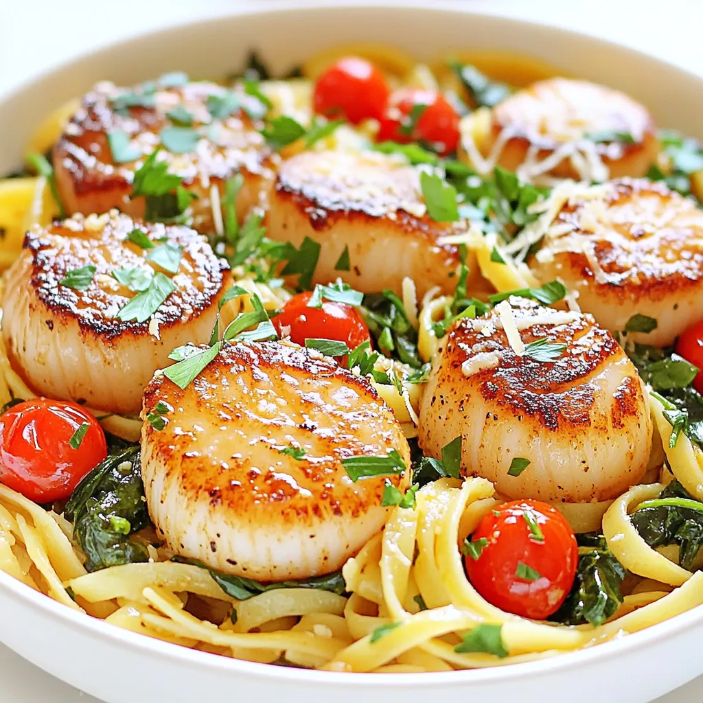 This dish shines with its fresh and simple ingredients. The sea scallops are the star, bringing a sweet and delicate flavor. I love using fresh pasta like linguine or spaghetti. Their texture holds the sauce well.