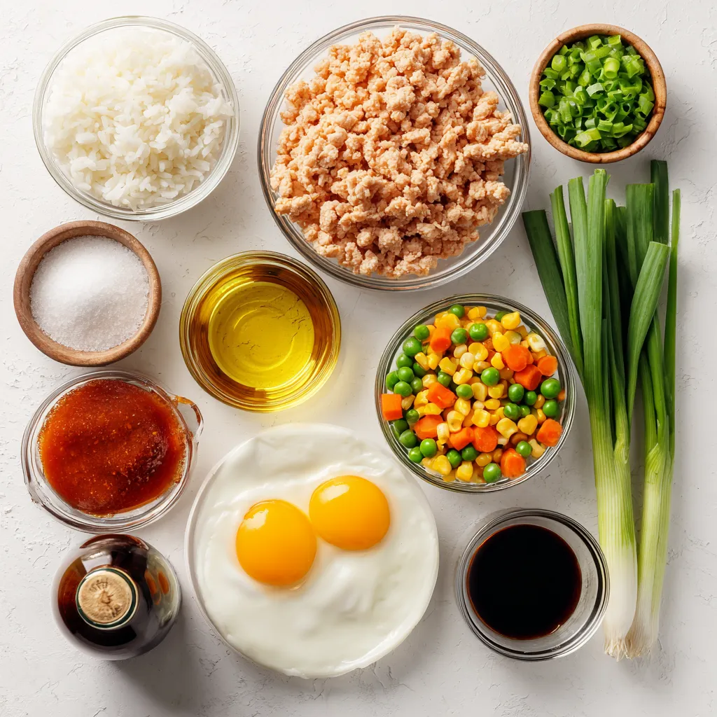 To make Ground Chicken Fried Rice, you need a few key ingredients. Each one brings flavor and nutrition to the dish. Here’s what you will need: