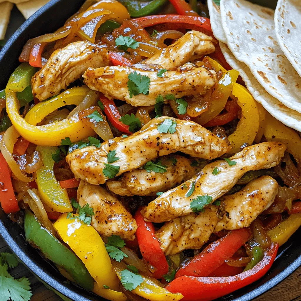 - 1 lb boneless, skinless chicken breasts, sliced into thin strips - 1 bell pepper (red, yellow, or green), sliced - 1 medium onion, sliced - 2 tablespoons honey - 2 tablespoons fresh lime juice - 2 tablespoons olive oil - 2 teaspoons chili powder - 1 teaspoon cumin - 1 teaspoon garlic powder - Salt and pepper to taste - Fresh cilantro, chopped (for garnish) - Tortillas (for serving) - Large skillet - Mixing bowl - Whisk or fork Gather these ingredients and tools before you start cooking. The chicken forms the base, while the bell pepper and onion add crunch and flavor. Honey and lime juice create a sweet and tangy sauce that makes this dish pop. The spices bring warmth and depth to the meal. Ensure you have a large skillet to cook everything evenly. A mixing bowl and whisk help you blend the marinade well. This easy setup makes cooking fun and simple. Enjoy the process of preparing this tasty one-pan meal! - In a large bowl, mix honey, lime juice, olive oil, chili powder, cumin, garlic powder, salt, and pepper. Whisk until everything blends well. - Add the sliced chicken to the marinade. Make sure all the pieces get coated. Let it marinate for at least 15 minutes. For more flavor, you can marinate it for up to 2 hours in the fridge. - Heat a large skillet over medium-high heat. When it’s hot, add the marinated chicken strips. Sauté for about 5-7 minutes. Cook until the chicken is browned and no longer pink inside. - Once cooked, take the chicken out and set it aside on a plate. - In the same skillet, add the sliced onion and bell pepper. Sauté them for about 4-5 minutes. Cook until they're tender and slightly caramelized. - Return the cooked chicken to the skillet with the vegetables. Toss everything together to combine. Cook for an extra 2-3 minutes to heat through. For the best flavor, marinate the chicken for at least 15 minutes. If you have time, marinate it for up to 2 hours in the refrigerator. This longer time allows the flavors to soak in deeply. When marinating, cover the bowl with plastic wrap or use a sealed bag. This keeps the chicken juicy and flavorful. To avoid overcooking the chicken, keep an eye on the color. It should turn a nice golden brown and no longer be pink inside. Use medium-high heat when you sauté. This heat cooks the chicken quickly and evenly. If the heat is too high, the outside may burn while the inside stays raw. For tortillas, I recommend using soft flour or corn tortillas. They both complement the chicken well. To make your dish pop, garnish with fresh cilantro. Its bright flavor adds a nice touch. Consider adding lime wedges on the side for extra zest. {{image_2}} You can easily add heat to your Honey Lime Chicken Fajita Skillet. One way is by incorporating jalapeños. Slice fresh jalapeños and mix them in with the veggies. This adds a nice kick and flavor. If you like different levels of heat, try using various chili powders. Each type brings a unique taste. Ancho chili powder is mild and smoky, while cayenne packs quite a punch. This dish is not just for chicken. You can make it with shrimp or beef. For shrimp, use large, peeled shrimp. Sauté them until they turn pink. If you prefer beef, slice flank steak thinly. Cook it the same way as chicken. For a vegetarian option, use firm tofu. Press and cube the tofu, then sauté until golden. This way, everyone can enjoy the meal. To enhance the flavor, consider adding extra herbs and spices. Fresh herbs like thyme or oregano can bring a new twist. You might also try a pinch of smoked paprika for depth. Sweetness can vary too. Instead of honey, consider adding pineapple juice or agave syrup. Each option gives a different taste profile while keeping that sweet and tangy balance. To keep your Honey Lime Chicken Fajita Skillet fresh, store leftovers in airtight containers. This helps keep the flavors intact and prevents spoilage. You can refrigerate it for up to three days. Just make sure it cools down before sealing. Yes, you can freeze this dish! To freeze, place the cooled fajitas in freezer-safe bags or containers. Squeeze out any air to prevent freezer burn. It will last for up to three months in the freezer. When you're ready to eat, thaw it in the fridge overnight. Reheat it on the stove or in the microwave until hot. Enjoy your meal anytime! It takes about 30 minutes. You need 15 minutes to prepare the ingredients and marinate the chicken. Cooking the chicken and veggies takes about 15 minutes. This means you can enjoy a tasty dinner in no time! Yes, you can! If you want to switch it up, try using shrimp or beef. Chicken thighs are a great choice too. They stay juicy and full of flavor. Just remember to adjust the cooking time to ensure everything is cooked perfectly. You have many options for sides! Serve it with warm tortillas for a classic touch. Rice or quinoa make great bases too. Add a side of black beans or corn for extra texture. A fresh salad with lime dressing complements the dish nicely. Enjoy mixing and matching your favorites! In this article, we covered how to make Honey Lime Chicken Fajita Skillet. We looked at key ingredients and easy step-by-step instructions. Remember to marinate the chicken for the best flavor and cook veggies until tender. You can also change the recipe by adding spices or using different proteins. In the end, this dish is fun, tasty, and quick to prepare. Enjoy making it and share it with friends!