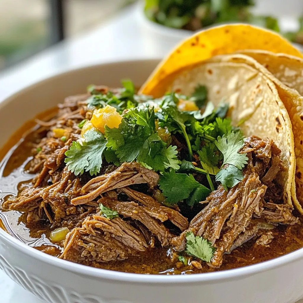 Serving suggestions: Return the shredded beef to the pot to soak up the juices. Serve it with warm tortillas and garnish with chopped cilantro. Enjoy this tasty meal!