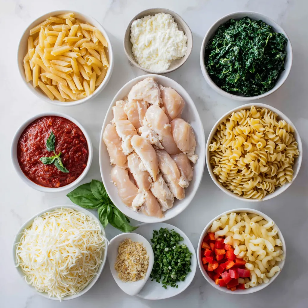 - 4 boneless, skinless chicken breasts - 2 cups marinara sauce - 1 cup mozzarella cheese, shredded - 1 cup ricotta cheese - 1/2 cup grated Parmesan cheese - 2 cups cooked pasta (penne or rotini) - 1 cup spinach, chopped - 1 bell pepper, diced - 1 teaspoon Italian seasoning - 2 cloves garlic, minced - Salt and pepper to taste - Fresh basil leaves for garnish For this dish, you need specific amounts of each ingredient. Here’s a breakdown: - Chicken: 4 breasts - Marinara sauce: 2 cups - Mozzarella cheese: 1 cup, shredded - Ricotta cheese: 1 cup - Parmesan cheese: 1/2 cup, grated - Cooked pasta: 2 cups - Spinach: 1 cup, chopped - Bell pepper: 1, diced - Italian seasoning: 1 teaspoon - Garlic: 2 cloves, minced - Salt and pepper: to taste If you need substitutes: - Use ground turkey instead of chicken. - Swap ricotta with cottage cheese for a lighter option. To make this casserole, gather these tools: - A 9x13 inch baking dish - Large mixing bowls - Measuring cups and spoons - Cooking utensils like a spatula and knife These tools help you mix, layer, and bake your delicious Italian Chicken Casserole with ease. {{ingredient_image_1}} 1. First, set your oven to 375°F (190°C). This helps the casserole cook evenly. 2. Grab a large bowl. In it, mix the cooked pasta, marinara sauce, chopped spinach, diced bell pepper, minced garlic, and Italian seasoning. Stir well. 3. Add salt and pepper to taste. This adds flavor to the mix. 4. Grease a 9x13 inch baking dish. Spread half of the pasta mixture evenly on the bottom. 1. Now, place the seasoned chicken breasts on top of the pasta layer. This keeps the chicken moist. 2. Spoon the ricotta cheese evenly over the chicken. This adds creaminess. 3. Take the rest of the pasta mixture and layer it over the ricotta-covered chicken. This creates a hearty base. 4. Finally, sprinkle shredded mozzarella and grated Parmesan cheese evenly on top. This will melt beautifully. 1. Cover the baking dish with aluminum foil. This helps everything cook well. 2. Bake for 25 minutes. This allows the flavors to blend. 3. After 25 minutes, remove the foil. Bake for another 15 minutes. Keep an eye on it. The cheese should be bubbling and golden. 4. When done, let the casserole rest for 5 minutes before serving. This makes it easier to cut. Garnish with fresh basil leaves for a bright touch. To make the best Italian chicken casserole, pay attention to each layer. Start with a good mix of pasta and sauce. This mix is the base, so make it tasty. Use fresh garlic and quality marinara sauce for rich flavor. Resting time is key. After baking, let the casserole sit for five minutes. This helps the layers firm up. You’ll get cleaner slices and better flavor. Serve your casserole hot. Pair it with a crisp salad or garlic bread. These sides add crunch and balance to the meal. For presentation, use a nice dish. Garnish with fresh basil leaves. This makes the dish look fresh and bright. Want to spice it up? Add red pepper flakes or sliced jalapeños. These add heat without overpowering the dish. You can also explore different herbs. Fresh oregano or thyme can enhance the flavor. For a milder taste, skip the spicy add-ons and focus on the cheeses. Pro Tips Use Fresh Ingredients: Fresh spinach, high-quality marinara sauce, and freshly shredded cheeses can elevate the flavor of your casserole, making it taste homemade and delicious. Customize Your Veggies: Feel free to add or substitute other vegetables such as mushrooms, zucchini, or olives to suit your taste preferences and add more nutrients. Let It Rest: Allowing the casserole to rest for a few minutes after baking helps it set, making it easier to serve and enhancing the overall flavor. Make It Ahead: This casserole can be assembled ahead of time and stored in the fridge or freezer. Just add a few extra minutes to the baking time if baking straight from the refrigerator. {{image_2}} You can change the protein in your casserole. Try turkey or tofu instead of chicken. Both options work well and add unique flavors. You can also switch the cheese. Use goat cheese for a tangy twist or a mix of cheeses for depth. If you need a gluten-free dish, choose gluten-free pasta. Many brands offer delicious options that fit right in. For those on a low-carb diet, use zucchini noodles or cauliflower rice instead of pasta. These swaps keep the meal tasty and satisfying. To bring a local touch to your dish, use fresh, local ingredients. For example, add seasonal vegetables like zucchini or eggplant. You can also adapt your casserole based on different Italian regions. In Sicily, add capers and olives for a Mediterranean flair. In Northern Italy, try using creamy polenta instead of pasta. Each twist gives your casserole a fresh and exciting flavor. To store leftovers, let the casserole cool first. Place it in an airtight container. You can keep it in the fridge for up to three days. When you're ready to eat, reheat it in the oven. Set the oven to 350°F (175°C) and heat for about 20 minutes. Stir it halfway through for even warming. Yes, you can freeze the casserole. Make sure it cools down completely. Use a freezer-safe container or wrap it tightly in plastic wrap and foil. This way, it stays fresh for about three months. To thaw, move it to the fridge for a night. Then, reheat it in the oven at 350°F (175°C) until hot. In the fridge, the casserole lasts three days. In the freezer, it stays good for three months. Look for signs of spoilage like off smells or mold. If you see these, throw it away. Always trust your senses when it comes to food safety. Can I use frozen chicken? Yes, you can use frozen chicken. Just make sure to thaw it first. Thaw it in the fridge overnight for best results. This keeps the chicken safe and easy to cook. What pasta is best for casseroles? Penne or rotini works best for casseroles. These shapes hold sauce well and mix easily with other ingredients. You can also try other shapes, like fusilli or farfalle. How to know whe