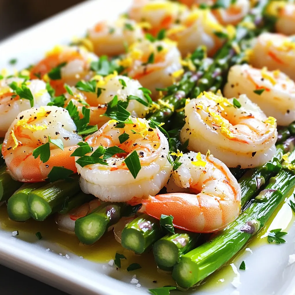 Use a large platter to serve. Arrange shrimp and asparagus in a colorful pattern. Garnish with parsley for a bright touch.