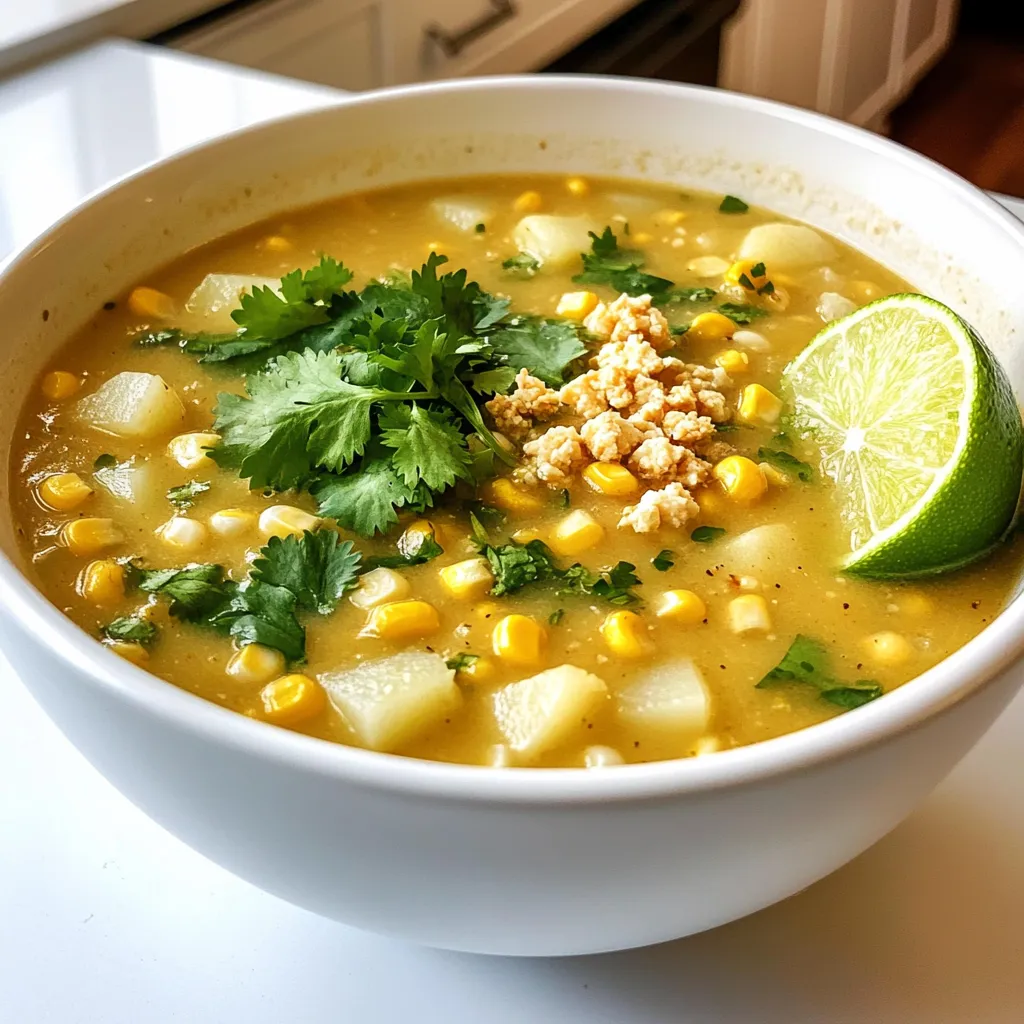 - 4 cups fresh corn kernels - 1 medium onion, chopped - 2 cloves garlic, minced - 2 medium potatoes, peeled and diced - 1 jalapeño, seeded and chopped (optional) - Fresh cilantro, chopped, for garnish - Lime wedges, for serving - 4 cups vegetable broth - 1 can (14 oz) coconut milk - 1 teaspoon smoked paprika - 1 teaspoon ground cumin - Salt and pepper to taste - Crumbled cojita cheese or feta for garnish - A splash of olive oil for sautéing In this soup, fresh corn shines as the star ingredient. You can use frozen corn if fresh isn’t available. The onion and garlic bring depth, while potatoes add heartiness. The jalapeño gives a nice kick if you like heat. Don't forget the cilantro and lime—it elevates the dish. Coconut milk adds creaminess without dairy, and the spices—smoked paprika and cumin—bring warmth. These pantry staples make this dish rich and flavorful. For a special touch, consider adding cojita cheese or feta on top. It adds saltiness and creaminess, making each bite delightful. To make Mexican street corn soup, start with the right tools and ingredients. Gather your fresh corn, onion, garlic, and potatoes. You can use frozen corn if needed. Having everything ready helps the cooking go smoothly. - Cooking Techniques: We will sauté, simmer, and blend. Sautéing onion and garlic adds flavor. Simmering cooks the potatoes and corn until tender. Blending gives the soup a creamy texture. - Importance of Ingredient Preparation: Chop the onion and garlic finely. Dice the potatoes into small pieces. This ensures even cooking. Fresh, quality ingredients make the soup taste better. For cooking, use a large pot. Heat a splash of olive oil over medium heat. Add the chopped onion and sauté for about 5 minutes. Stir in minced garlic for another minute. This builds a strong base flavor. - Pot Preparation and Heat Levels: After the onion and garlic, add diced potatoes and corn. If you want heat, toss in chopped jalapeño. Pour in vegetable broth and bring the mixture to a boil. Then, reduce the heat to low. Let it simmer for about 15 minutes, or until the potatoes are soft. - Blending Techniques for Desired Texture: Use an immersion blender to blend the soup. Blend until it's smooth and creamy. If you like some chunks, blend just half the soup. Mix the blended part with the unblended corn and potato chunks. This gives a nice texture to enjoy. After blending, stir in coconut milk, smoked paprika, ground cumin, and lime juice. Season with salt and pepper. Heat gently for 5 more minutes. This lets all the flavors blend together nicely. To get the right texture in your Mexican street corn soup, blend wisely. Use an immersion blender for a creamy base. If you like some bits, blend just half. Leave the rest of the corn and potato chunks for a heartier dish. This adds both creaminess and a fun bite. Add depth to your soup with extra spices. Try a pinch of chili powder for heat. You can also mix in fresh herbs like cilantro or parsley. A splash of cream can make it richer. For a zestier kick, squeeze in lime juice right before serving. Always taste and adjust the salt and pepper to your liking. Do not rush the sautéing process. Cooking the onion and garlic until soft brings out their flavors. Avoid over-blending the soup; a few chunks make it more enjoyable. Lastly, don’t skip the garnishes. Fresh cilantro and cojita cheese elevate this dish, making it beautiful and tasty. {{image_2}} You can easily make Mexican Street Corn Soup vegetarian or vegan. Use vegetable broth and coconut milk as your base. This gives a rich and creamy texture. For a vegan twist, skip the cojita cheese. Instead, try a sprinkle of nutritional yeast for a cheesy taste. Fresh herbs can also enhance the flavor. They add freshness and a pop of color. You can adjust the spice level to fit your taste. If you love heat, add more jalapeños. You can roast them for extra flavor. To keep it mild, skip the jalapeños or use only a small amount. You can also add a pinch of cayenne pepper for warmth without the heat. Garnishes can change the soup's look and taste. Fresh cilantro is a must for a bright touch. Crumbled cojita cheese adds creaminess. You can also use feta cheese if you like. For a crunchy texture, try crushed tortilla chips or diced avocado. Lime wedges are perfect for a tangy finish. They brighten the flavors and make each bite exciting. You can store leftover Mexican street corn soup in your fridge. Keep it in an airtight container. Make sure it cools down first. It can last for 3 to 4 days. Before you store it, taste it again. This way, you can adjust the seasoning if needed. To freeze the soup, use freezer-safe containers. Leave some space at the top for expansion. The soup stays good in the freezer for up to 3 months. When you’re ready to enjoy it, thaw it in the fridge overnight. This keeps the texture nice. Reheat the soup on the stove for the best flavor. Use medium heat and stir often. If it looks thick, add a splash of vegetable broth. You can also microwave it in a bowl. Cover the bowl to keep moisture in. Heat in 1-minute intervals, stirring in between. Enjoy your warm and creamy soup! Mexican Street Corn Soup is a creamy, hearty dish that brings street food to your kitchen. It combines fresh corn, potatoes, and spices for a rich flavor. The soup is often garnished with cilantro and crumbled cheese, making it a colorful delight. Yes, you can use frozen corn. It saves time and still tastes great. Just add it directly to the pot when the recipe calls for corn. The soup will still be sweet and creamy. To add heat, include more jalapeños or a pinch of cayenne pepper. You can also stir in hot sauce before serving. Adjust the spice to match your taste buds. If you want a substitute for coconut milk, use heavy cream or cashew cream. You can also try almond milk for a lighter option. Each will change the flavor slightly but still create a tasty soup. Leftovers can last in the fridge for about three day