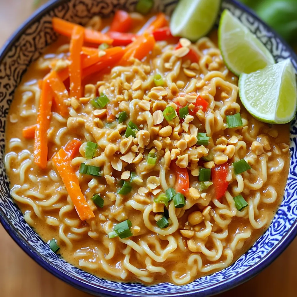 Serve this dish right away! Top it with chopped peanuts and lime wedges on the side. A fresh squeeze of lime juice adds a great zing. Enjoy your tasty, spicy peanut ramen!