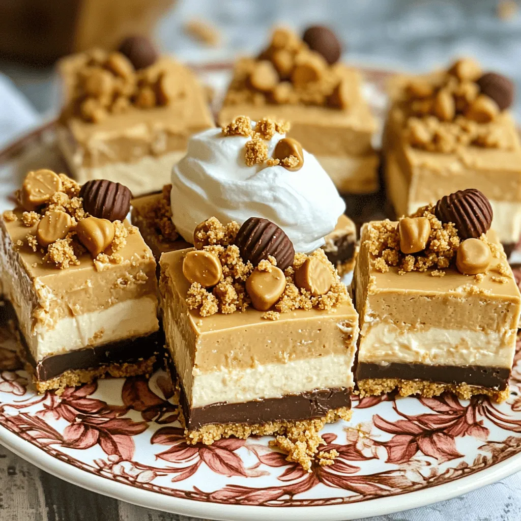 Spread the creamy peanut butter filling over the crust. Use a spatula to make it even. After that, cover the dish with plastic wrap. Chill in the fridge for at least 4 hours. This helps the bars set well. Once they are firm, cut them into squares. Top with your reserved chopped peanut butter cups. For extra flair, you can drizzle melted chocolate on top. Enjoy these tasty bars!