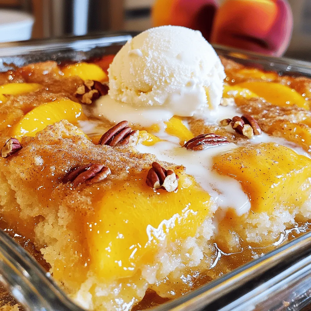 If you want to add some crunch, consider chopped pecans. They add a delightful texture. A splash of vanilla extract enhances the flavors, making the dessert even better. Each ingredient plays a role in creating a delicious Peach Cobbler Dump Cake that is sure to impress.