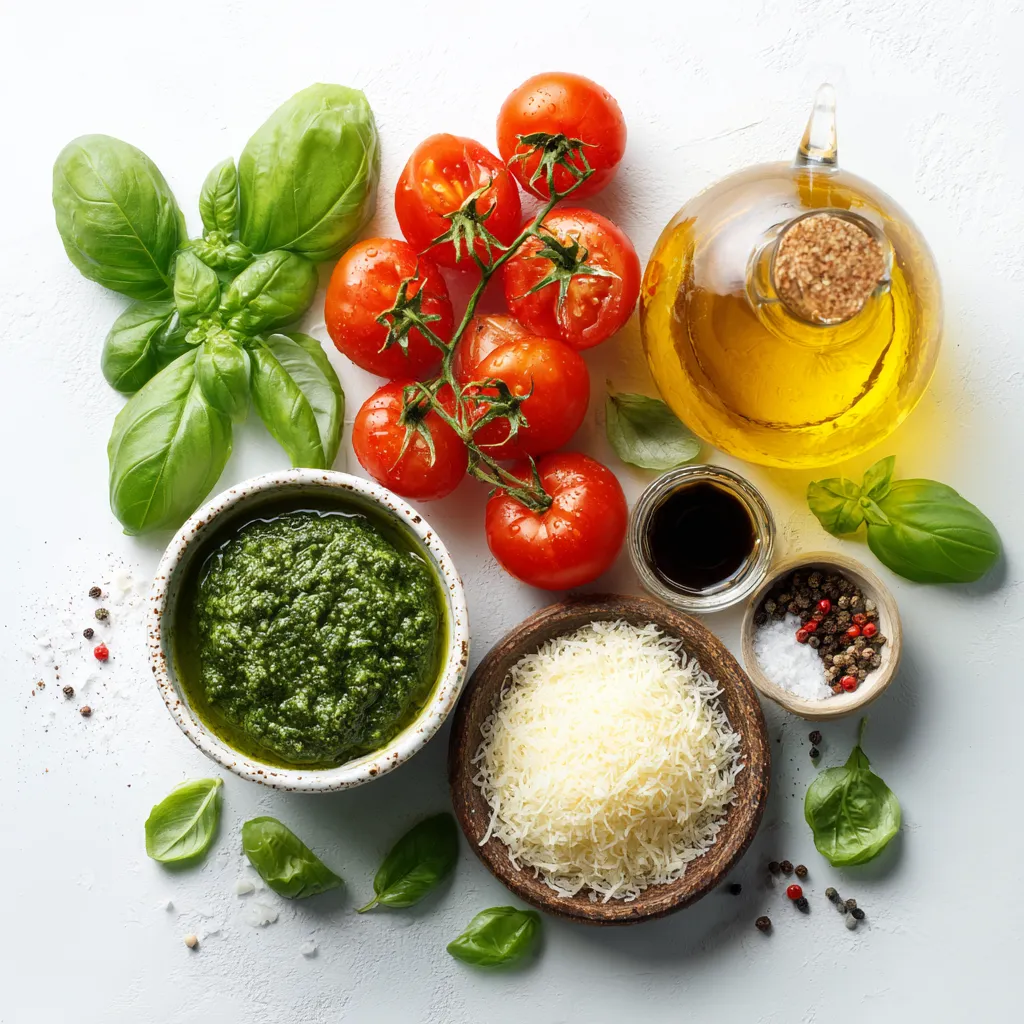 Main Ingredients for Pesto Pasta with Roasted Tomatoes