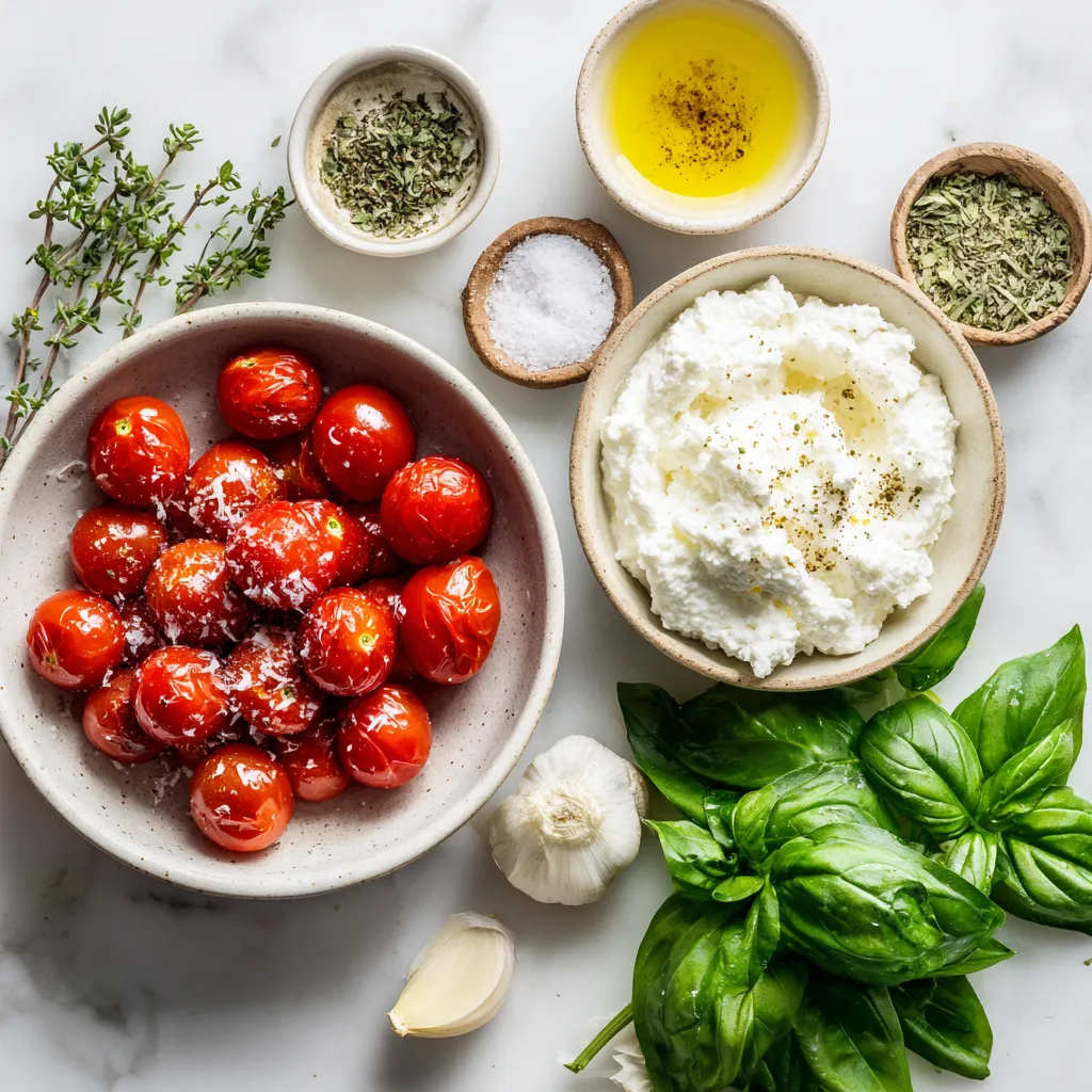 These ingredients create a simple yet tasty dish. The cherry tomatoes bring sweetness, while ricotta adds creaminess.