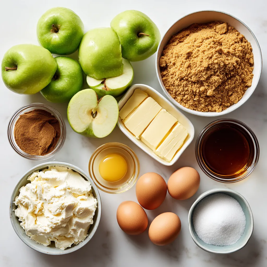 Next, let’s talk about the cheesecake layer. Softened cream cheese gives a smooth texture. You need granulated sugar for sweetness and vanilla for flavor. Eggs add richness, and cinnamon brings warmth.