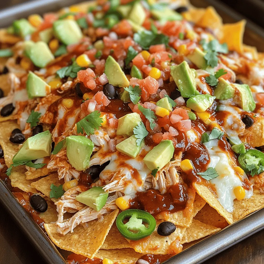 These ingredients come together to create a dish that is both fun and flavorful. The shredded chicken is the star, soaking up the BBQ sauce for a tasty punch. Tortilla chips form the base, providing crunch. The cheddar cheese melts beautifully, making everything stick together. Black beans and corn add nutrition and texture. The fresh toppings like pico de gallo and cilantro bring brightness. You can choose sour cream for a creamy finish. Now that you have your ingredients, you’re ready to create this crowd-pleasing dish!
