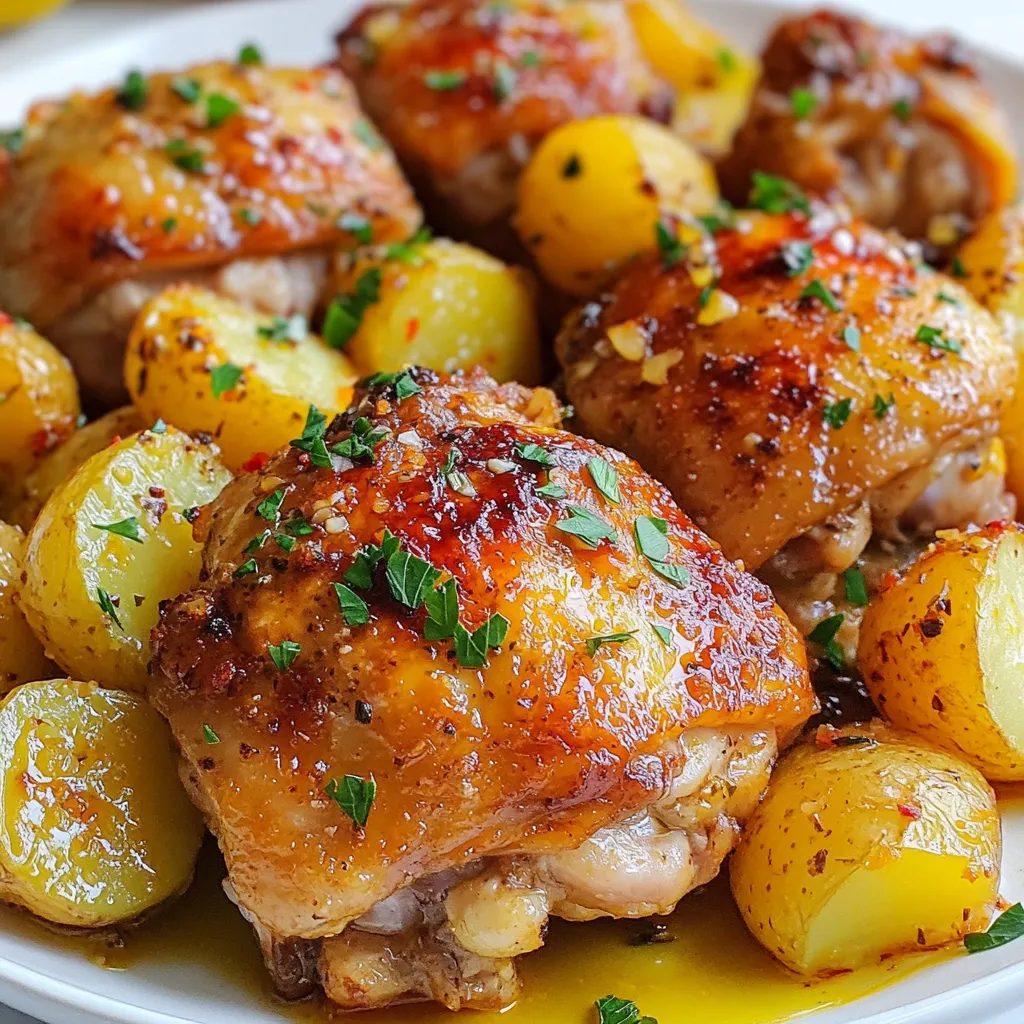 To save time, prepare this dish ahead. Marinate your chicken and potatoes the night before. Store them in the fridge for quick cooking. This makes weeknight dinners easier. If you have leftovers, let them cool before freezing. Use airtight containers to keep them fresh. When you reheat, make sure to add a splash of water to keep them moist. You can heat them in the oven or microwave.