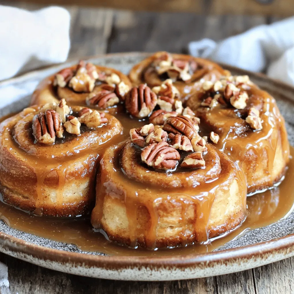 To make Slow Cooker Caramel Pecan Sticky Buns, you need the following ingredients: - 1 can (16 oz) refrigerated cinnamon rolls - 1/2 cup chopped pecans - 1/2 cup brown sugar - 1/4 cup unsalted butter, melted - 1/4 cup maple syrup - 1 teaspoon ground cinnamon - 1/2 teaspoon vanilla extract - Pinch of salt - 1/4 cup heavy cream These ingredients work together to create a sweet and sticky treat that is hard to resist. You can swap some ingredients for different flavors. Try using walnuts instead of pecans for a different nutty taste. If you like a lighter flavor, you can use honey instead of brown sugar. For a dairy-free option, use coconut oil in place of butter and almond milk instead of heavy cream. These swaps keep the spirit of the recipe while adding your own twist. Using fresh ingredients is key to great flavor. Fresh cinnamon rolls will puff up nicely, giving you that fluffy texture. Fresh nuts add crunch and richness. Always check the expiration dates on your ingredients, especially for the maple syrup and heavy cream. Fresh ingredients help your sticky buns taste their absolute best, making them a perfect treat for any occasion. Start by greasing the inside of your 5-quart slow cooker. Use non-stick cooking spray or butter. This step helps keep the sticky buns from sticking. Make sure you cover all the sides well. In a medium bowl, whisk together the melted butter, brown sugar, maple syrup, ground cinnamon, vanilla extract, and a pinch of salt. Mix until smooth and creamy. This sweet sauce will soak into the buns, adding rich flavor. Pour the caramel sauce into the bottom of the slow cooker. Spread it out evenly. Next, sprinkle the chopped pecans over the sauce. This adds a nice crunch to each bite. Open the can of cinnamon rolls and separate them. Cut each roll into quarters. Layer these pieces on top of the pecans and caramel in the slow cooker. Drizzle the heavy cream over the cinnamon rolls. This keeps them moist while they cook. Cover the slow cooker with the lid. Set it to low and cook for 2 to 3 hours. Check the rolls to see if they are fluffy and fully cooked. When done, turn off the slow cooker. Let them cool for a few minutes before inverting onto a plate. Enjoy the gooey caramel and pecans dripping over the rolls! To keep the rolls moist, drizzle heavy cream over them before cooking. This step adds richness and helps prevent dryness. The cream seeps into the rolls, making them soft and fluffy. Always cover the slow cooker with the lid to trap steam. This keeps the heat in and helps the rolls rise beautifully while cooking. Slow cookers vary in heat levels. If you have a newer model, check the rolls after 2 hours. If your slow cooker is older, you may need the full 3 hours. The rolls are done when they look fluffy and golden. Also, use a toothpick to check for doneness; it should come out clean. Serve the sticky buns warm for the best taste. Invert them onto a plate so the gooey caramel drips over the rolls. For a fancy touch, drizzle extra maple syrup on top or sprinkle with powdered sugar. You can also add fresh fruit like berries for color. This makes each bite not only tasty but also beautiful! {{image_2}} You can make these sticky buns even more fun. Try adding different nuts like walnuts or almonds. They bring a new taste and texture. You can also add fruits such as chopped apples or pears. Their sweetness mixes well with the caramel. Just remember to chop the fruits small so they cook evenly. The caramel sauce is the heart of this recipe. You can tweak the flavors to match your taste. For a touch of spice, add a pinch of nutmeg or ginger. If you love chocolate, mix in some cocoa powder for a rich flavor. You can even swap maple syrup for honey for a different sweetness. Each option changes the bun's personality. If you need gluten-free options, don’t worry! You can use gluten-free cinnamon rolls instead of regular ones. Many brands offer tasty choices. Just check the package for gluten-free labeling. The rest of the recipe stays the same. You can still enjoy these sticky buns without gluten. This way, everyone can join in on the treat! To store leftover sticky buns, let them cool completely. Place them in an airtight container. You can keep them at room temperature for up to two days. If you want them to last longer, refrigerate them. They will stay fresh for about a week in the fridge. When you're ready to enjoy the sticky buns again, preheat your oven to 350°F. Place the buns in an oven-safe dish and cover them with foil. Heat for about 10 to 15 minutes until warm. You can also heat them in the microwave. Just place a bun in a microwave-safe dish and heat for about 20 to 30 seconds. Add a drizzle of maple syrup for extra flavor. To freeze sticky buns, first, let them cool completely. Wrap each bun tightly in plastic wrap. Then, place them in a freezer bag or container. They can be frozen for up to three months. When you want to eat them, thaw the buns in the fridge overnight. Reheat as described above. Enjoy these sweet treats anytime! You can tell the sticky buns are done when they look golden brown. Check the center; it should be soft but not doughy. If a toothpick comes out clean, they are ready. The cooking time is usually between 2 to 3 hours on low heat. I recommend keeping an eye on them, especially as the time approaches the 2-hour mark. Yes, you can use frozen cinnamon rolls in this recipe. Just let them thaw for about 30 minutes before cutting them into quarters. This way, they will cook evenly and rise well in the slow cooker. The taste will still be great, but fresh rolls will give a better texture. These sticky buns are great on their own, but you can add a few sides. I love serving them with fresh fruit like berries or sliced apples. You might also like a side of whipped cream or vanilla ice cream. A hot cup of coffee pairs nicely too. You can store leftovers in an airtight container for up to 3 days. If you want to keep them longer, consider fr