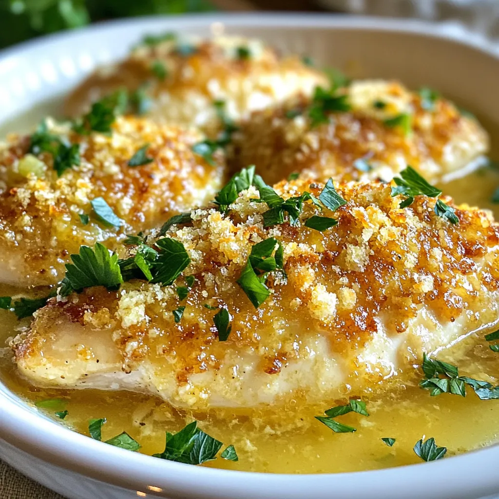 Once the chicken is cooked, carefully remove it from the slow cooker. Let it rest for a few minutes to keep it juicy. If you want a thicker sauce, turn the slow cooker to high. Stir in an extra tablespoon of Parmesan cheese for creaminess. Finally, serve the chicken garnished with fresh parsley. Drizzle the tasty broth over the top for extra flavor. Enjoy your meal!