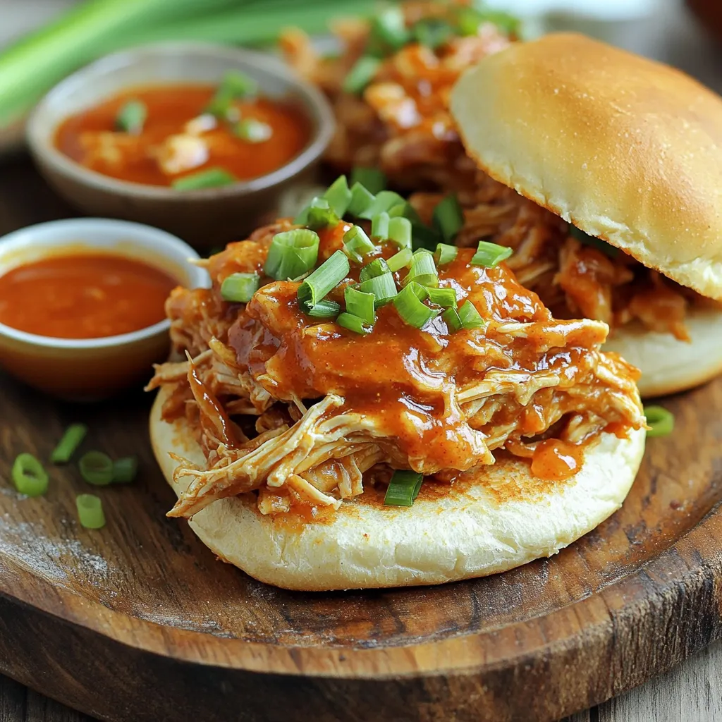 Lastly, I always have my serving essentials. I choose hamburger buns or small tortillas. They hold the pulled chicken well. I love to add chopped green onions on top for a fresh look. They also add a mild onion flavor that complements the dish.