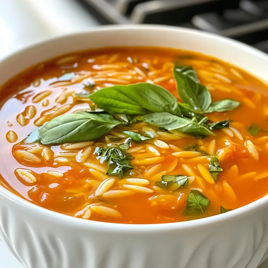 A comforting and flavorful soup featuring orzo pasta, crushed tomatoes, and fresh spinach.