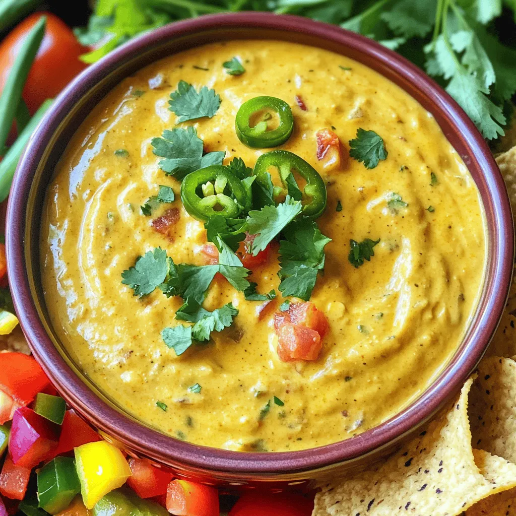 To make your dip taste cheesier, use different spices. Try adding a pinch of turmeric for color. A bit of smoked salt can mimic a cheese flavor too. You can also mix in some onion powder or garlic powder for depth. Nutritional yeast already adds a cheesy vibe, but feel free to experiment!