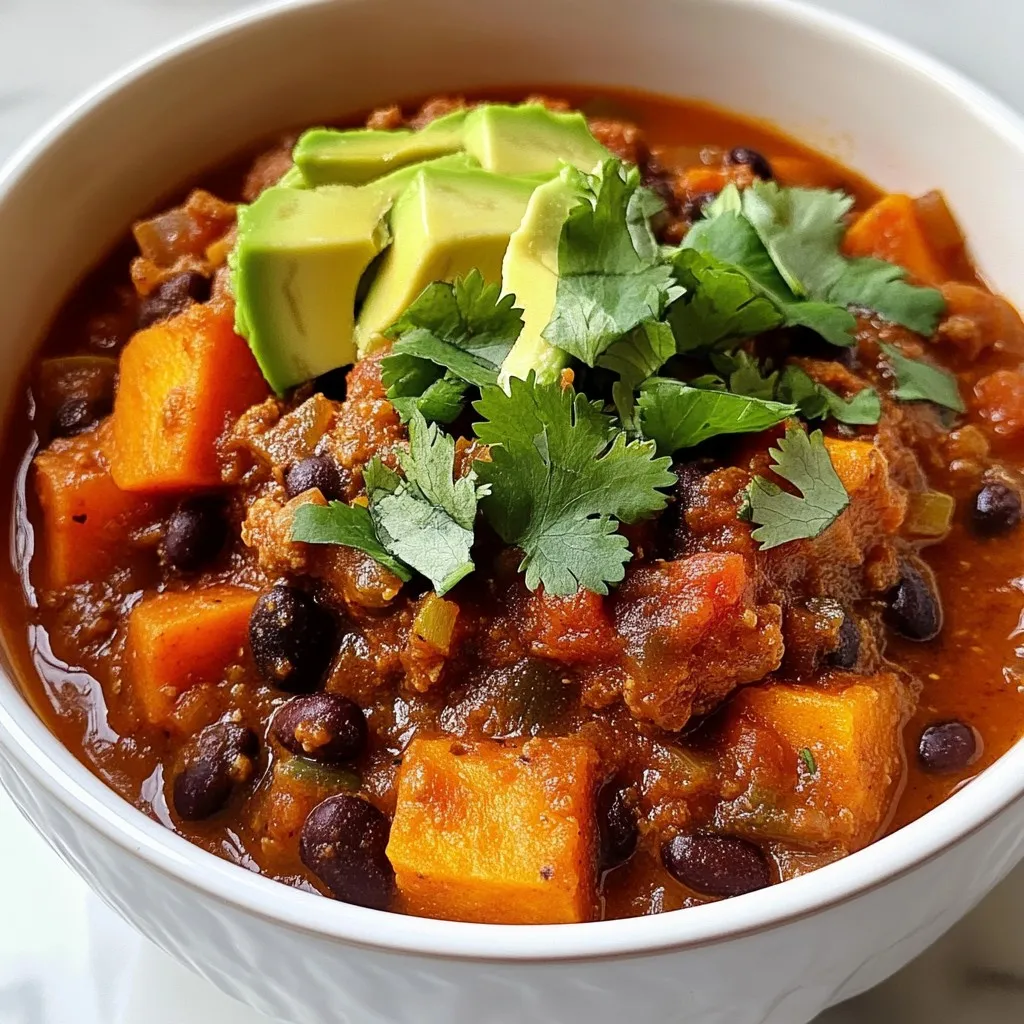 A hearty and flavorful chili made with sweet potatoes and black beans, perfect for a comforting meal.