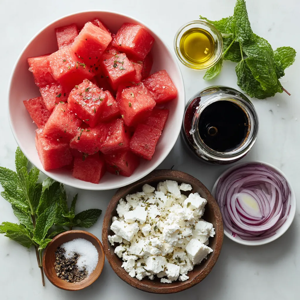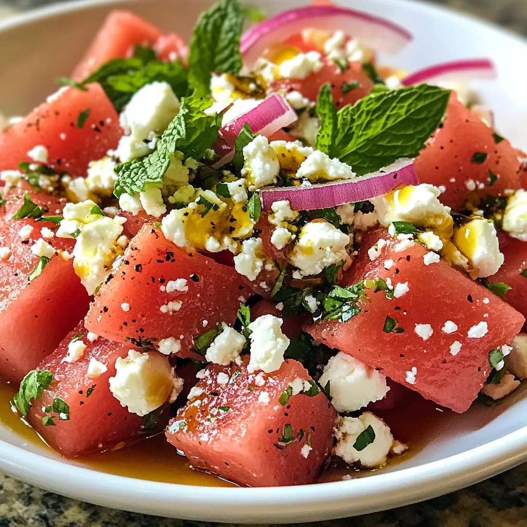A light and refreshing salad combining sweet watermelon, creamy feta, and fragrant mint.