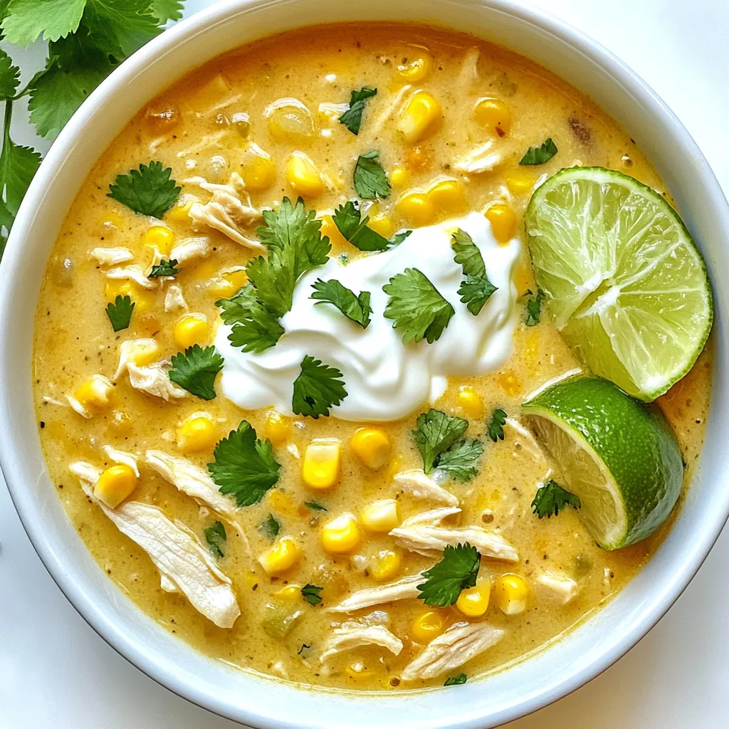 - 1 lb boneless, skinless chicken breasts - 4 cups chicken broth - 1 can (15 oz) white beans - 1 medium onion, diced - Spices and seasonings: - 3 cloves garlic, minced - 1 can (4 oz) diced green chilies - 1 teaspoon ground cumin - 1 teaspoon chili powder - 1/2 teaspoon dried oregano - Salt and pepper to taste - 1 cup corn kernels (fresh or frozen) - 1 cup sour cream - 1/2 cup cream cheese, softened - Fresh cilantro - Lime wedges - Sour cream You can swap chicken for turkey or even tofu. This keeps it tasty and fun. If you want lower fat dishes, use low-fat sour cream or cream cheese. Full-fat options add more creaminess. Choose what fits your taste! {{ingredient_image_1}} 1. Sautéing onions and garlic: First, heat the olive oil in a large pot over medium heat. Add the diced onion and cook it until it turns clear, about 5 minutes. This step builds a great base flavor. Next, stir in the minced garlic and let it cook for 1 minute. You want to smell that delicious garlic aroma! 2. Seasoning chicken: Now, add the chicken breasts to the pot. Season them well with salt, pepper, cumin, and chili powder. Sauté the chicken for about 5-7 minutes until it turns white on the outside. This process adds depth to the dish and ensures the chicken is full of flavor. 1. Boiling and simmering: Pour in 4 cups of chicken broth and add the diced green chilies, white beans, and oregano. Bring this mix to a boil. Once it boils, reduce the heat to low, cover the pot, and let it simmer for 20-25 minutes. This slow cooking makes the chicken tender and allows all the flavors to meld. 2. Shredding chicken: After simmering, take the chicken out of the pot. Use two forks to shred the chicken into bite-sized pieces. This helps distribute the chicken evenly throughout the chili. Return the shredded chicken back to the pot. 1. Combining cream cheese and corn: Stir in the corn, sour cream, and softened cream cheese. Mix until everything is well combined and heated through. This creamy mix gives the chili a rich texture that's hard to resist. 2. Adjusting seasoning: Taste your chili and adjust the seasoning with more salt or pepper as needed. If the chili seems too thick, add more chicken broth until it reaches the texture you like. The final touch is key to making it perfect for your taste. For a slow cooker version, start by adding all your ingredients to the pot. This includes the chicken, onion, garlic, spices, and broth. Set your slow cooker to low and let it cook for 6-8 hours. Shred the chicken before serving. If you prefer an Instant Pot adaptation, sauté the onion and garlic first using the sauté function. Then, add the remaining ingredients and seal the lid. Cook on high pressure for 15 minutes, then do a quick release. Shred the chicken and mix well. Want some heat? Adding jalapeños for spice can elevate the flavor. Chop a few and add them in when you sauté the onion. Adjust the amount based on your spice tolerance. You can also incorporate additional vegetables. Consider adding diced bell peppers, zucchini, or even spinach. They add color and nutrition without changing the taste too much. For serving suggestions and bowl arrangement, ladle the chili into deep bowls. A dollop of sour cream on top creates a nice contrast. Sprinkle fresh cilantro over the chili for a fresh look. Don’t forget the garnishing with lime and cilantro. Place lime wedges on the side. This adds a zesty touch. It also gives your guests a chance to add more flavor as they like. Pro Tips Cooking Chicken: For extra flavor, consider marinating the chicken in lime juice and spices for a few hours before cooking. Thickening the Chili: If you prefer a thicker chili, you can add a tablespoon of cornstarch mixed with water during the simmering stage. Flavor Enhancements: Try adding diced jalapeños or a splash of hot sauce for an extra kick of heat. Garnishing: Experiment with different toppings such as avocado slices, shredded cheese, or crushed tortilla chips for added texture and flavor. {{image_2}} You can make white chicken chili vegetarian by using plant-based substitutes for chicken. Try using tofu, tempeh, or seitan. These options absorb flavors well and add protein. You can also use jackfruit for a textured bite. You can explore different beans in your chili. Navy beans and cannellini beans are great choices. Navy beans are small and creamy, while cannellini beans are larger and have a nutty taste. Both add a nice texture and flavor. If you love heat, add spicy green chilies or hot sauce. You can mix in diced jalapeños or serrano peppers for an extra kick. Adjust the amount to fit your spice level. This will make your white chicken chili exciting and bold. White chicken chili lasts in the fridge for about 4 to 5 days. To keep it fresh, store it in an airtight container. This helps to prevent any smell from other foods in the fridge from mixing in. If you want to save some for later, you can freeze the chili. First, let it cool completely. Then, pour it into a freezer-safe container or bag. Be sure to leave some space at the top, as it may expand when frozen. When you want to use it, thaw the chili in the fridge overnight or use the defrost setting on your microwave. To reheat your chili, warm it on the stove over low heat. Stir it often to make sure it heats evenly. You can add a splash of chicken broth if it seems too thick. If you want to keep the creaminess and flavor, avoid using high heat. This way, your chili stays smooth and tasty. Yes, you can use frozen chicken. Just make sure to cook it longer. When using frozen chicken, add it to the pot while it’s still frozen. Let it simmer for an extra 10-15 minutes. This ensures it is fully cooked and tender. Always check the center of the chicken to ensure it is no longer pink. To thicken your chili, you have several options. First, you can mash some of the white beans. This adds creaminess without extra steps. Another option is to use cornstarch. Mix cornstarch with cold water, t